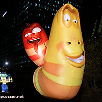 오전이나 오후에 직접 러버덕 보셨던 분이라면 이 사진을 보며 '밤에는 내가 봤던 모습과 다르네'라는 생각을 할지 모릅니다. 러버덕이 달라진건 아닌데 오전과 오후에 푸른 하늘을 배경으로 볼 수 있었던 것과 저녁의 어두운 분위기에서 구경하는 것은 차이가 있죠. 야간에는 주변이 어둡다보니 러버덕에 초점이 쉽게 쏠리더군요. 러버덕 노란 색깔이 굉장히 밝다는 것을 알 수 있습니다. 귀여운 캐릭터 이미지가 잘 나타났죠.
