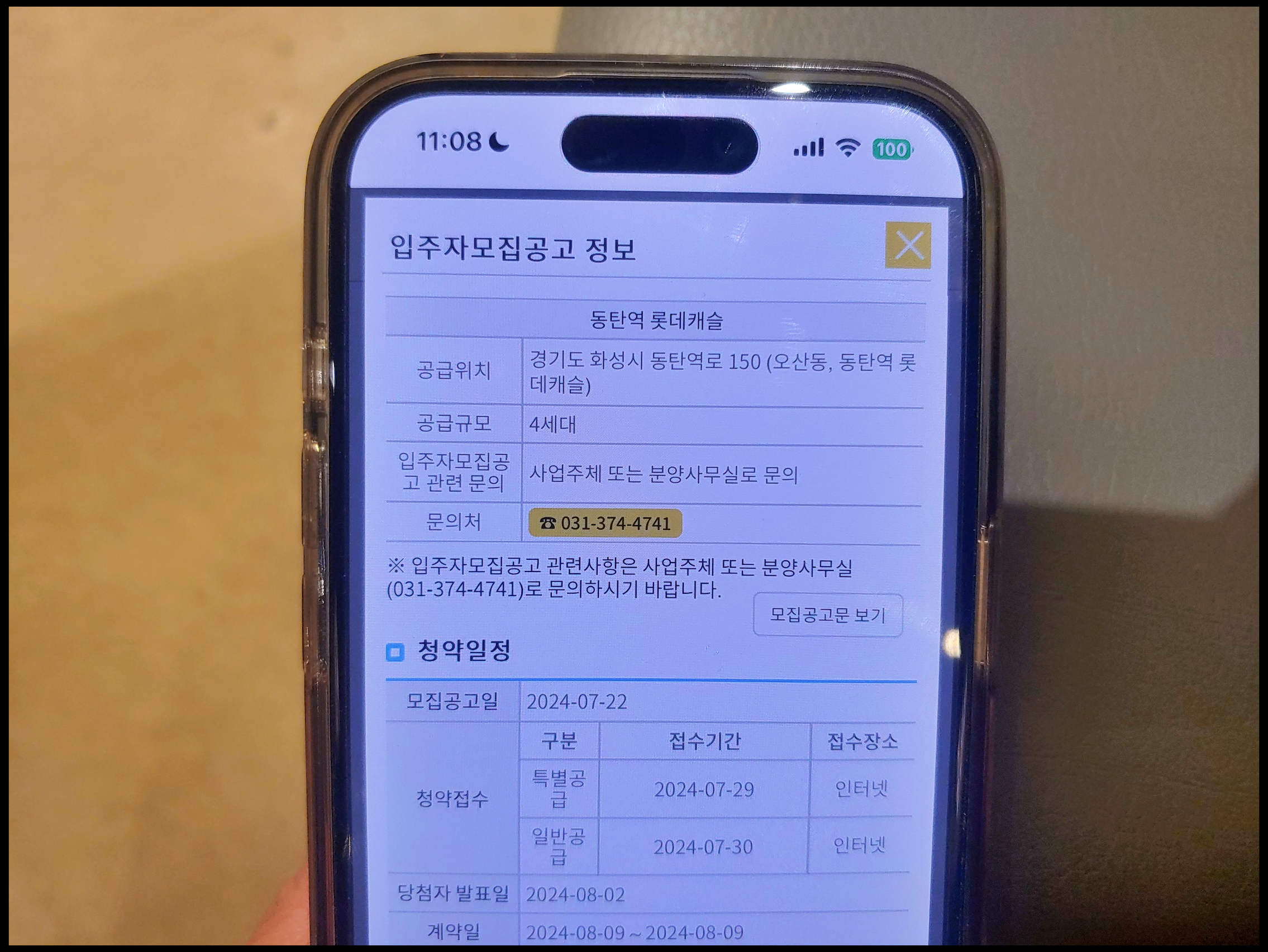 [사진 = 동탄역 롯데캐슬 줍줍 무순위 일정 이렇습니다. 오는 7월 29일 월요일 청약 접수일(오전 9시 ~ 오후 5시 30분, 청약홈), 8월 2일 금요일 당첨자 발표일, 8월 6일 화요일 서류접수일, 8월 9일 금요일 계약일입니다. 특히 7월 29일은 래미안 원펜타스 특별공급 신청일입니다. 청약홈 접속하는 분이 많을 것으로 예상됩니다. (C) 청약홈 앱]