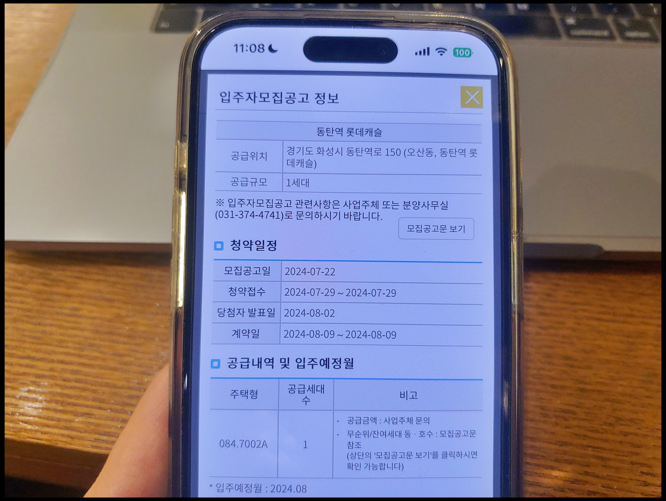 - 입주시기 : 2024년 8월(잔금 납입 마쳐야 함)
