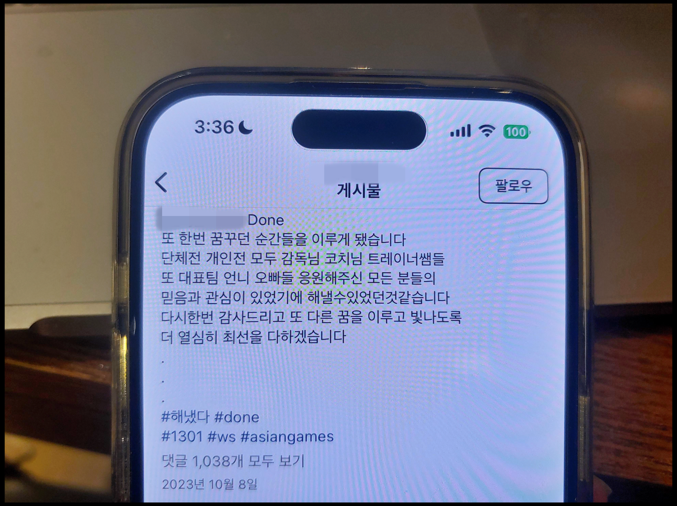 [사진 = 안세영은 2023년 가을에 개최된 2022 항저우 아시안게임 2관왕 이후 인스타그램을 통해 소감을 남겼습니다. 단체전 및 여자 단식 결승전 모두 중국의 천위페이 상대로 이겼습니다. 중국 원정에서 이루어낸 성과라는 점에서 눈길을 끕니다. 이 당시에도 안세영 세계랭킹 1위였는데 자신의 커리어에서 아시안게임 제패는 처음이었습니다. 2023년에 사상 첫 아시안게임 및 세계선수권 제패했다면 2024년에 올림픽 금메달 획득에 나섭니다. (C) 안세영 인스타그램]