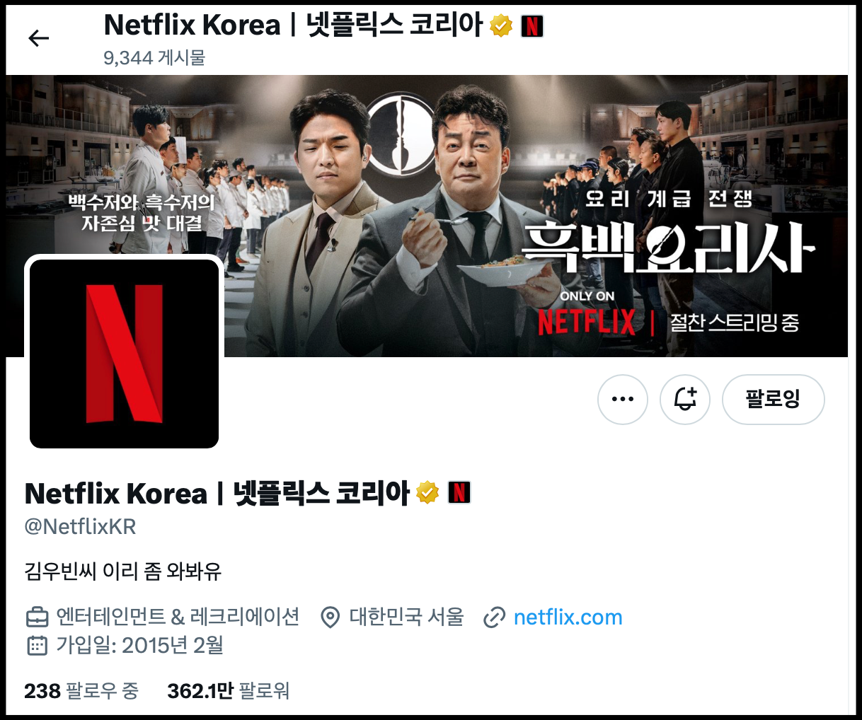 [사진 = 넷플릭스 코리아 X(구 트위터) 계정 메인. 해당 OTT 오리지널 콘텐츠 흑백요리사는 안성재 셰프와 백종원 대표가 심사위원으로 출연하는 요리 서바이벌 프로그램입니다. 100명의 셰프가 우승 상금 3억 원을 놓고 격돌합니다. (C) 넷플릭스 코리아 X(구 트위터) 메인]