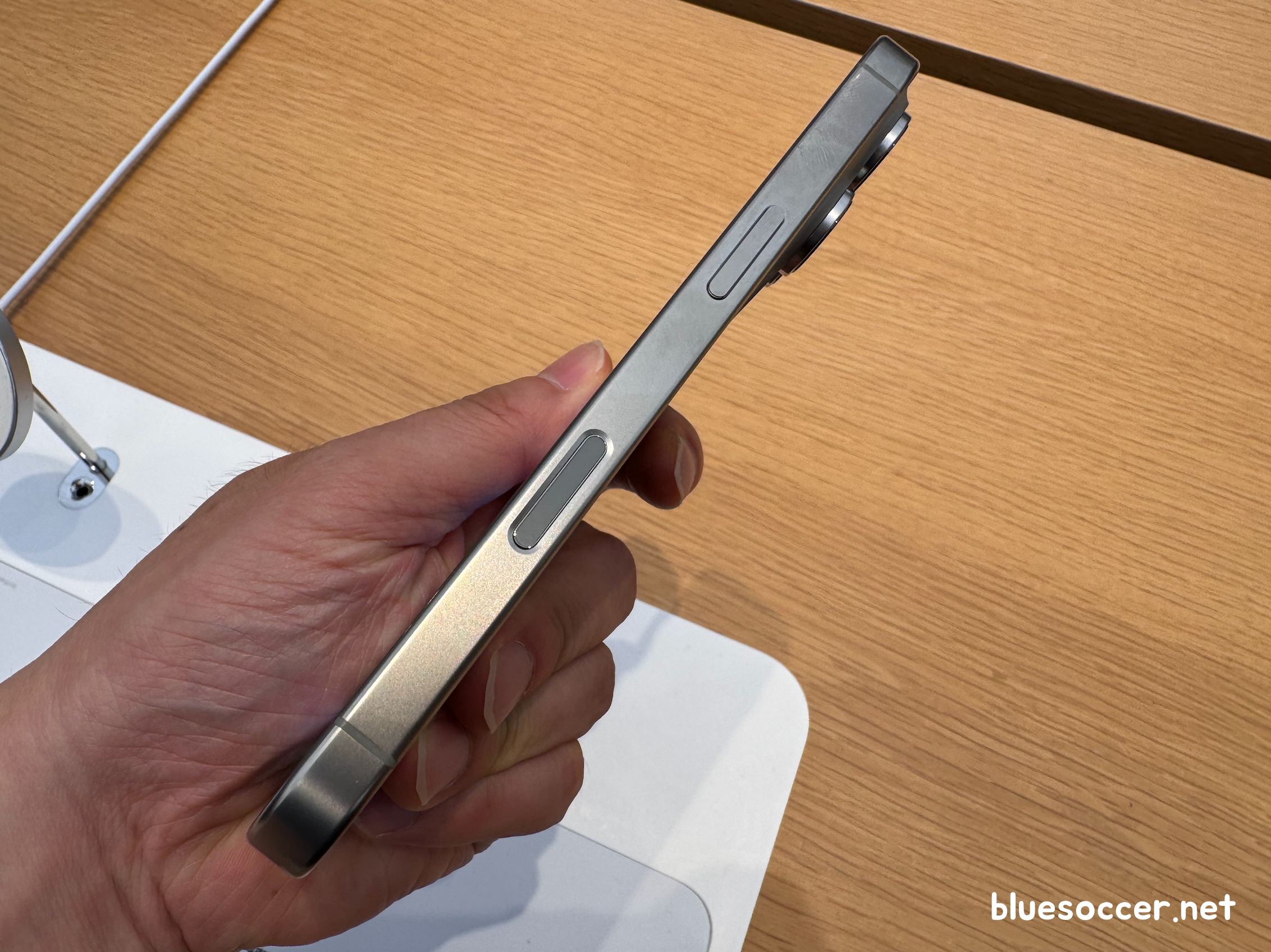 아이폰16프로 실물 직접 살펴보니 베젤 얇게 표현된 것이 눈에 띄었습니다. 역대 아이폰 중에서 가장 얇다고 합니다. 이를 통해 디스플레이를 넓게 볼 수 있어서 광활함 느끼기 좋습니다. OLED 패널이라 동영상의 선명함이 눈에 띄실 겁니다. 이 제품을 보고 난 뒤에 아이폰16 일반형 2종 실제로 봤는데 프로형 2종에 비해 베젤이 얇지 않아 보였습니다. 프로형의 매리트를 느낄 수 있습니다.