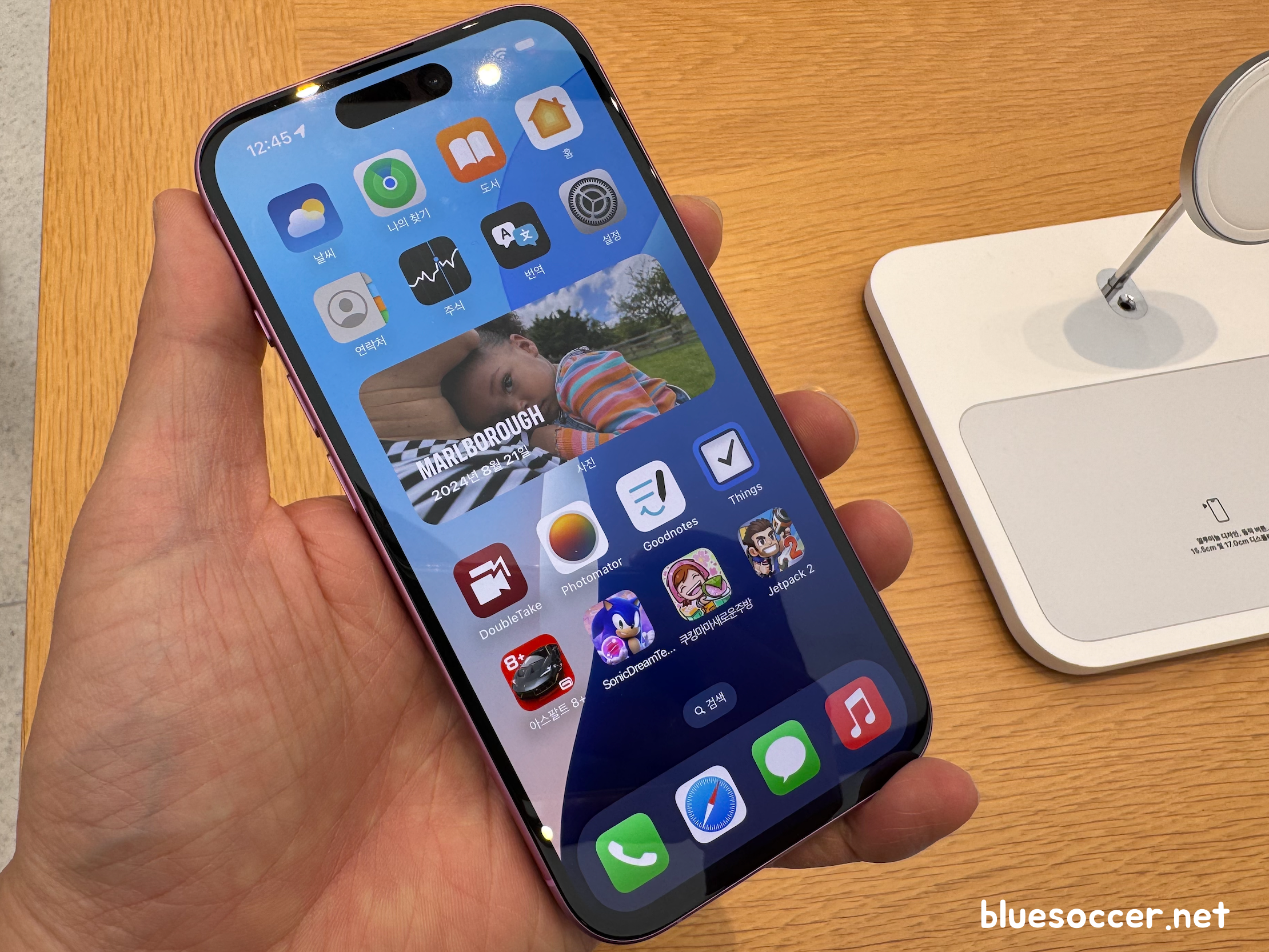 애플 아이폰16 핑크 실물 모습입니다. 그야말로 진하게 표현됐습니다. 한국식 표현으로는 홍매색 보는 것 같습니다. 전작의 아이폰15 핑크 연한 톤과 정반대의 느낌입니다. 개인적으로 아이폰15 핑크 색상이 잘 나왔다고 봅니다. 색이 연하게 표현되는 것을 선호하는 한국식 트랜드에 잘 어울립니다. 주로 젊은 세대에서 이러한 경향이 강합니다. 그 이전의 아이폰13 핑크 연한 톤이었으며, 이번에 출시된 아이폰16 프로 데저트티타늄 거의 로즈골드나 다름 없는데 톤이 연했습니다. 그래서인지 아이폰16 핑크 진한 톤이 어색하게 보입니다. '연한 핑크'와 정반대되는 톤의 모델이 나왔으니 말입니다. 물론 이 부분은 사람마다 생각이 다를 수 있습니다. 아이폰 색상은 자신의 취향에 맞는 것이 가장 좋습니다.