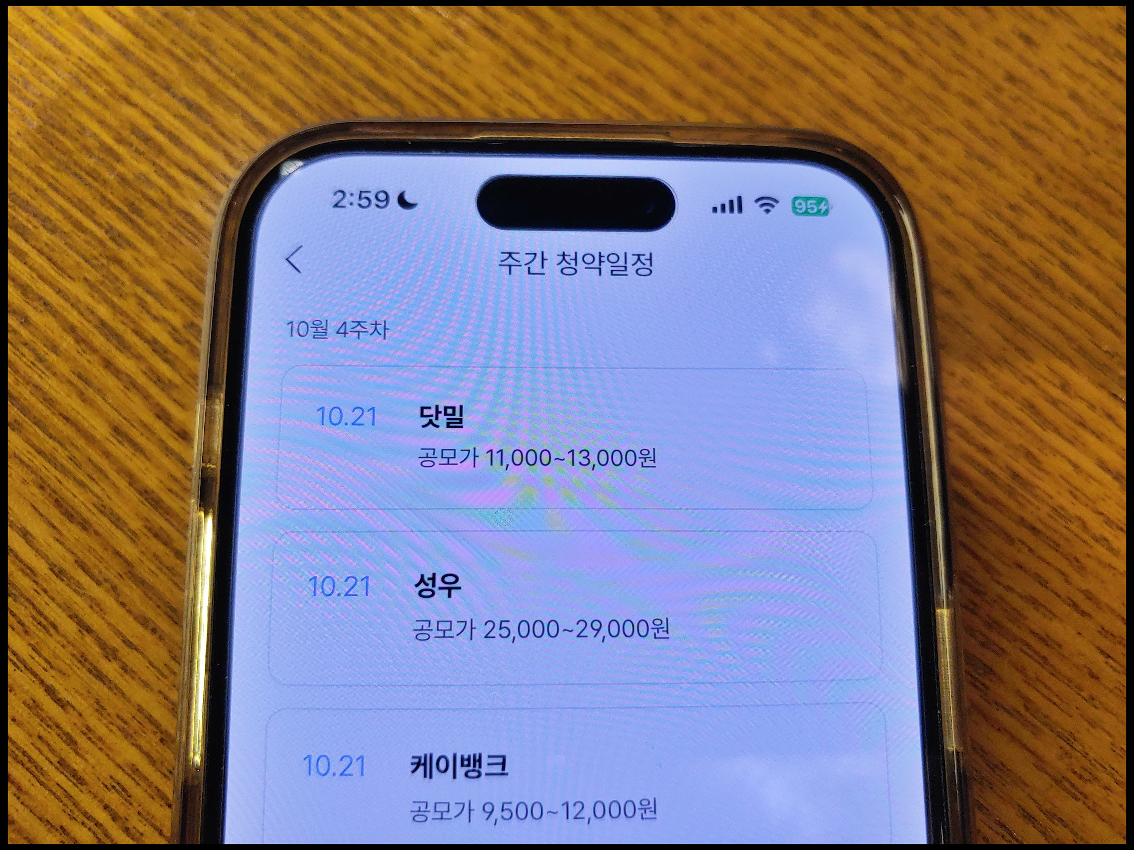 [사진 = 아시는 분들도 계시겠지만, 케이뱅크 앱 내에서 공모주 일정 잘 정리되어 있습니다. 10월 4주차에 케이뱅크 종목이 뜬 점이 눈에 띕니다. 청약 신청 기간은 10월 21일부터 22일까지 이틀이며 닷밀(미래에셋증권) 성우(한국투자증권) 공모주 서로 동일합니다. 만약 두 종목의 수요예측 결과가 좋게 나올 경우 일반 청약자 입장에서는 비례 배정 때문에 자금 배분을 효율적으로 해야 할 것 같습니다. 10월에 청약 가능한 종목이 많아서 일반 청약자에게 바쁜 시기입니다. (C) 케이뱅크 앱]