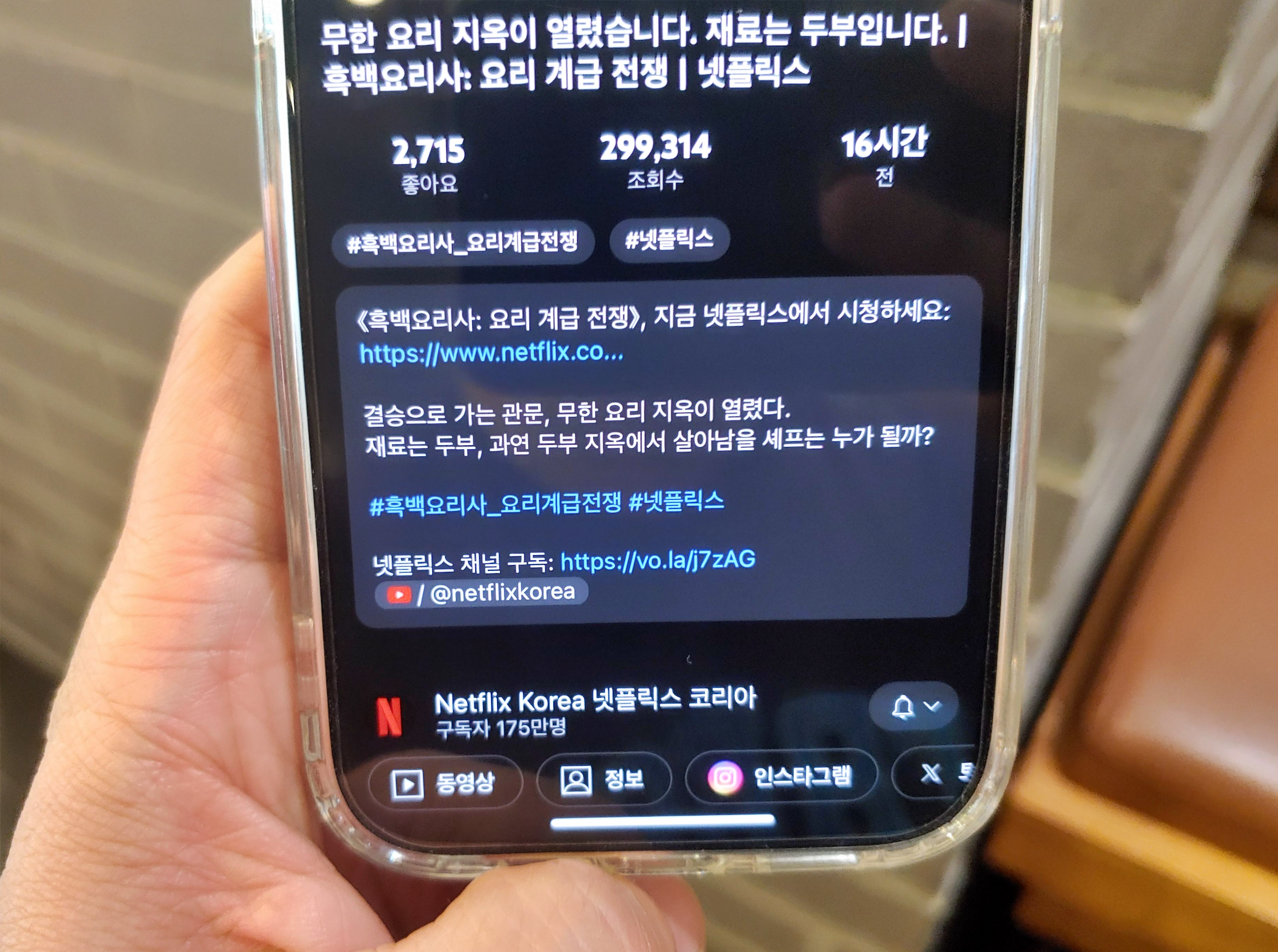 [사진 = 넷플릭스 흑백요리사 세미 파이널 2차 미션 '무한 요리 지옥' 살아남았던 최종 1인은 애드워드 리 셰프였습니다. 과거 미국 아이언 셰프 우승자이자 미국의 유명 셰프라는 저력을 해당 미션에서 실력으로 과시했습니다. 단순히 음식만 맛있는 것은 아니었습니다. 자신에게 익숙하지 않은 두부로 30분 간격 6개의 음식을 만들어내면서 서로의 특색이 다른 창의성을 과시했습니다. 52세의 나이에도 지치지 않는 체력과 정신력이 놀라웠습니다. 이러한 모습에 시청자들이 감탄할 수밖에 없었습니다. 그래서인지 넷플릭스 코리아 유튜브에 올라온 무한 요리 지옥 영상 일부가 공개된지 16시간 만에 29만 뷰 도달했습니다. (C) 넷플릭스 코리아 유튜브]