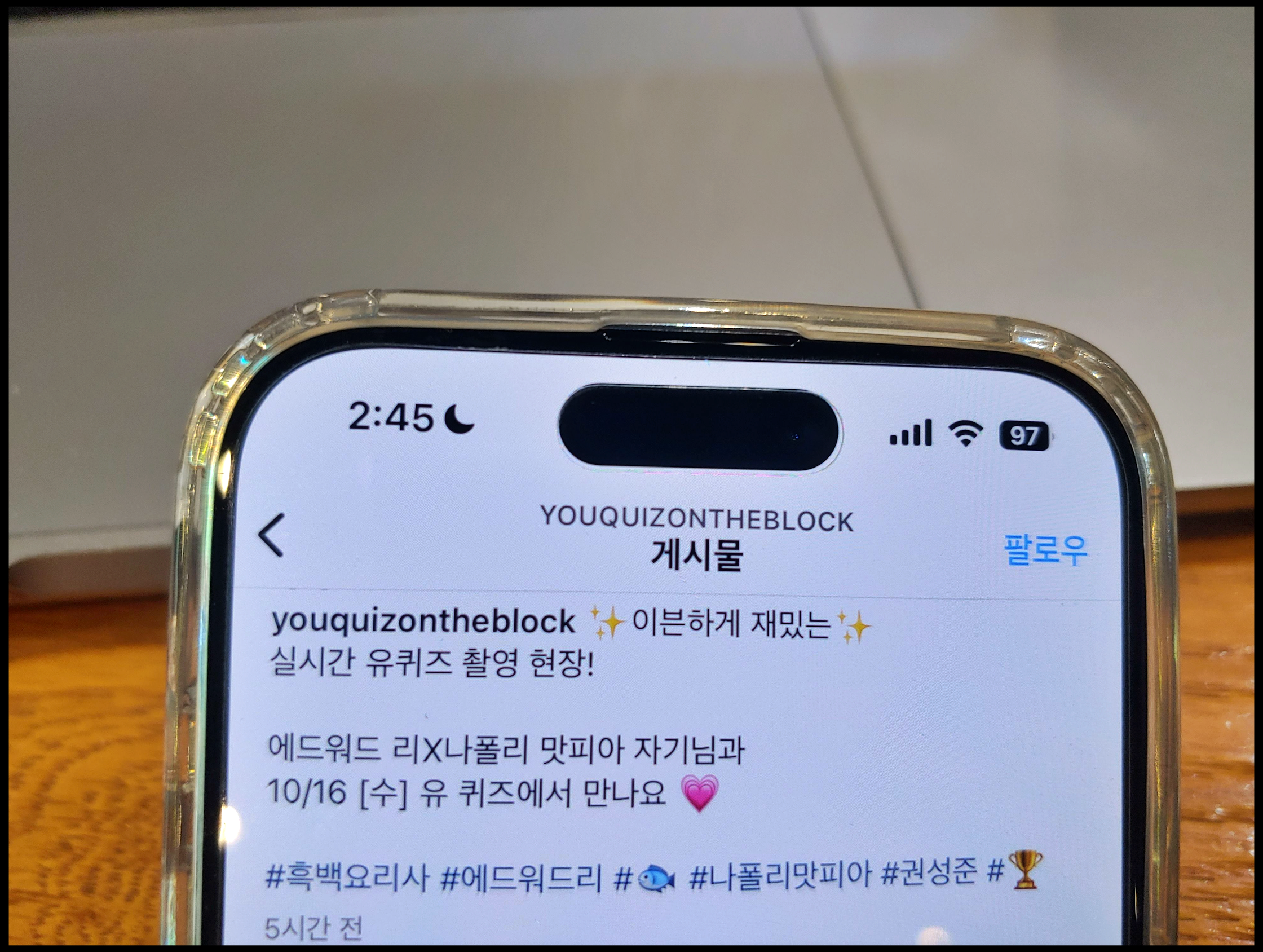 [사진 = 에드워드 리 셰프 유퀴즈 출연 성사됐습니다. tvN 예능 프로그램 유퀴즈 온 더 블럭 인스타그램의 10월 9일 게시물을 통해 올라왔습니다. 흑백요리사 우승자 권성준 셰프(나폴리맛피아)와 함께 출연합니다. 지금의 흑백요리사 높은 화제성을 놓고 봤을 때, 어쩌면 며칠 뒤 이 프로그램 출연한 모습이 시청자들에게 공개될 것입니다. (C) tvN 유퀴즈 온 더 블럭 인스타그램]