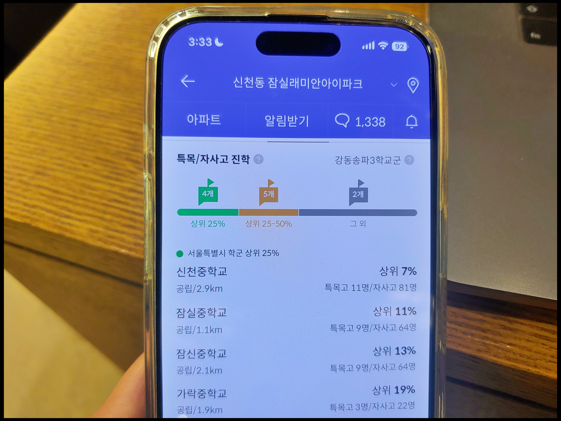 (5) 우수한 학군 : 초중고 여러 학교와 가까움. 특히 중학교 학군 서울 상위 20% 이내 포함된 곳이 4곳(신천중, 잠실중, 잠신중, 가락중)
