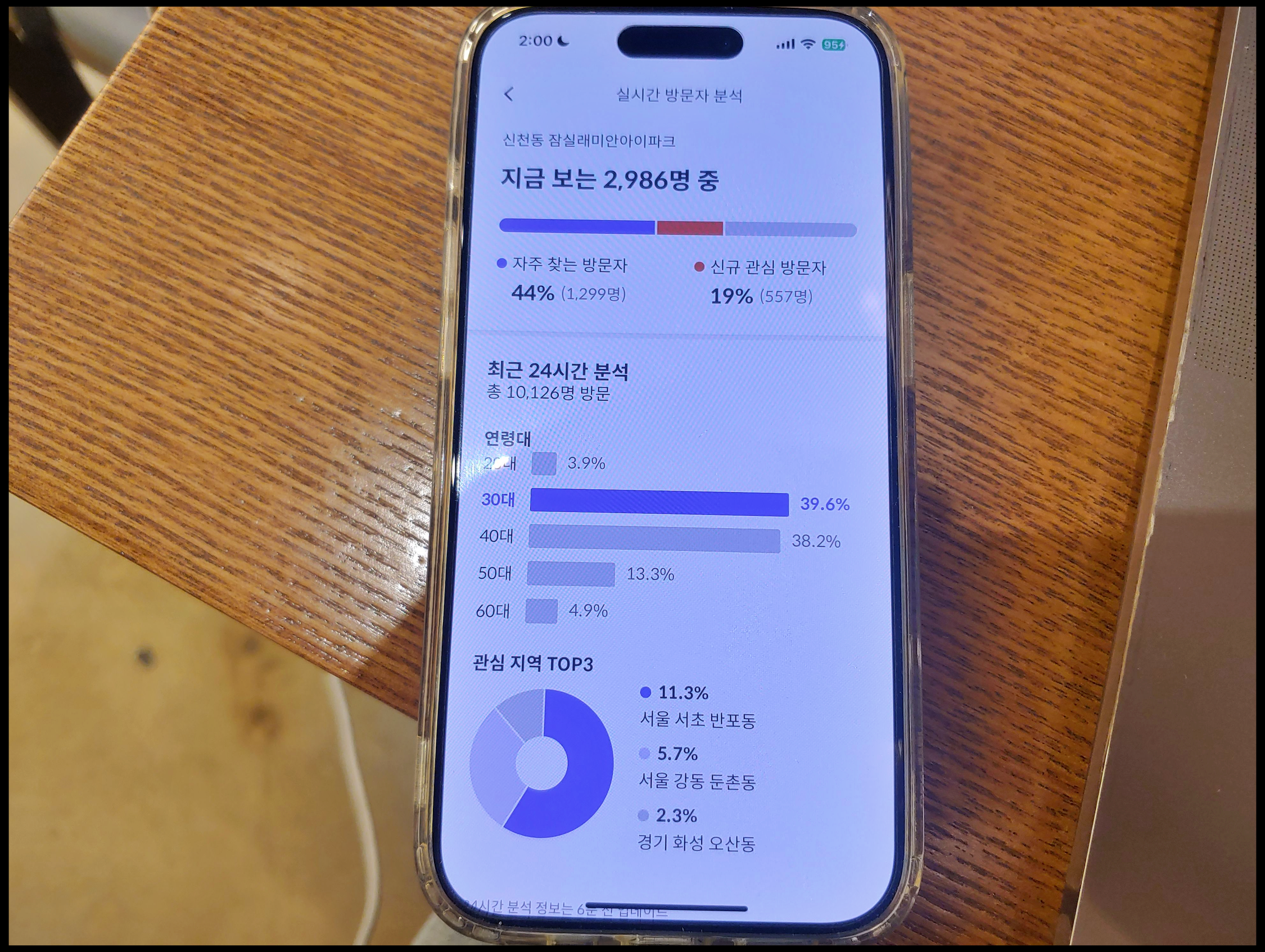 [사진 = 잠실 래미안 아이파크 청약 그동안 많은 사람들의 관심이 높았습니다. 호갱노노 앱에서 송파구 월간 방문자 1위 기록했습니다. 자주 찾는 방문자 분의 비율 높았던 점이 눈에 띕니다. 이곳 청약 나오는 것을 관심 깊게 바라봤던 사람이 많음을 알 수 있습니다. (C) 호갱노노 앱]