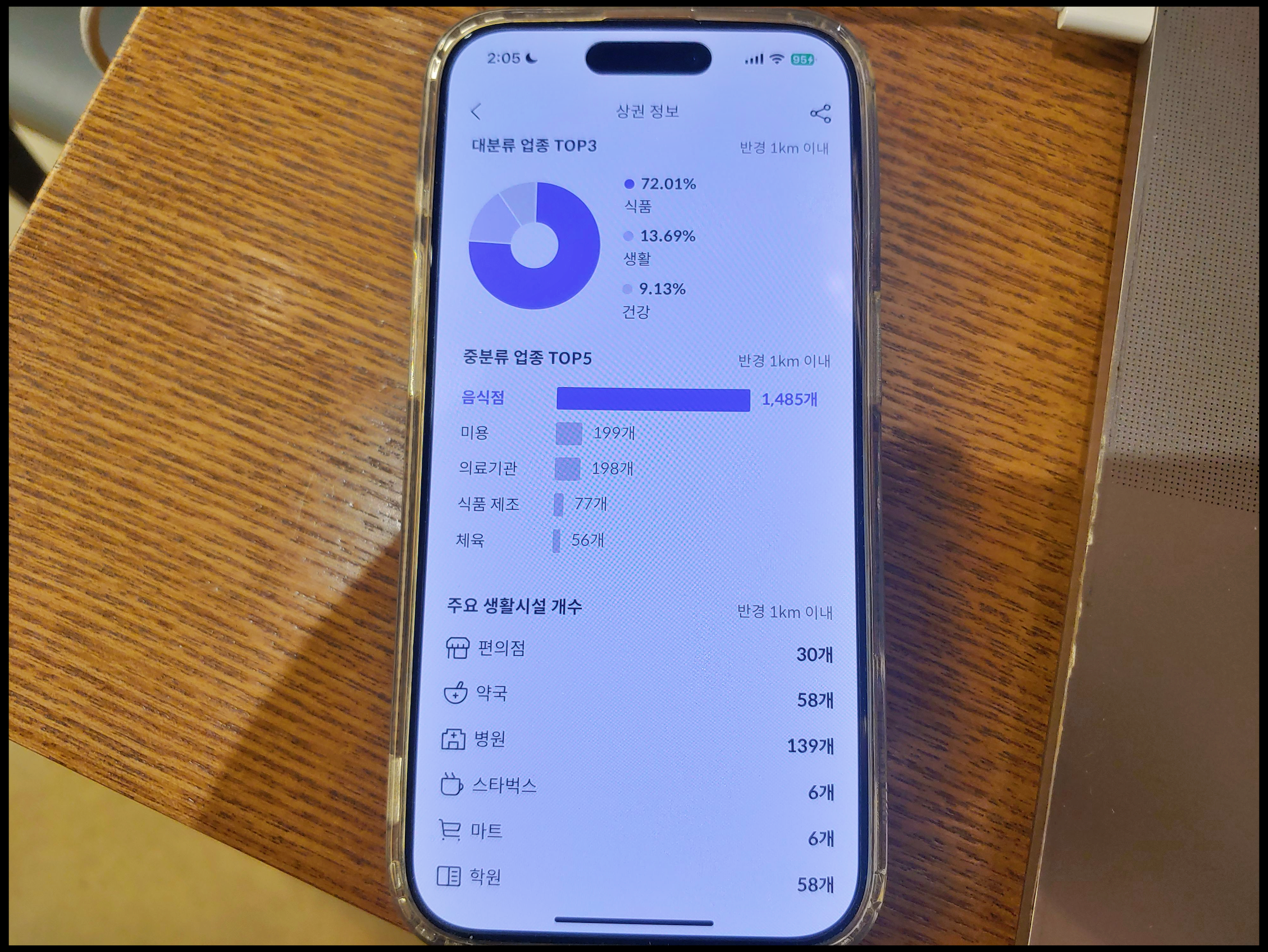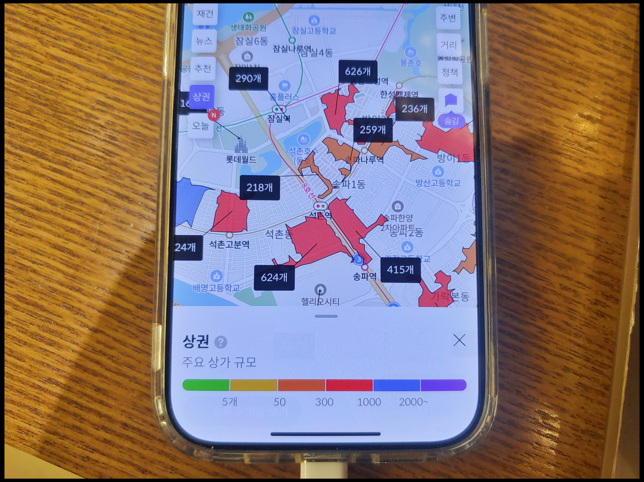 [사진 = 잠실 래미안 아이파크 상권 좋은 이점에 대해서는 두말 할 필요하지 않아도 됩니다. 한마디로 강합니다. 잠실역 일대 포함하여 가깝게 도달할 수 있는 상권이 많고 또 많습니다. 반경 1km 이내 도달 가능한 음식점 1,485개로서 많은 편입니다. 스타벅스가 6개인 것도 이점입니다. 스세권 선호하는 분들에게 플러스 요소입니다. (C) 호갱노노 앱]