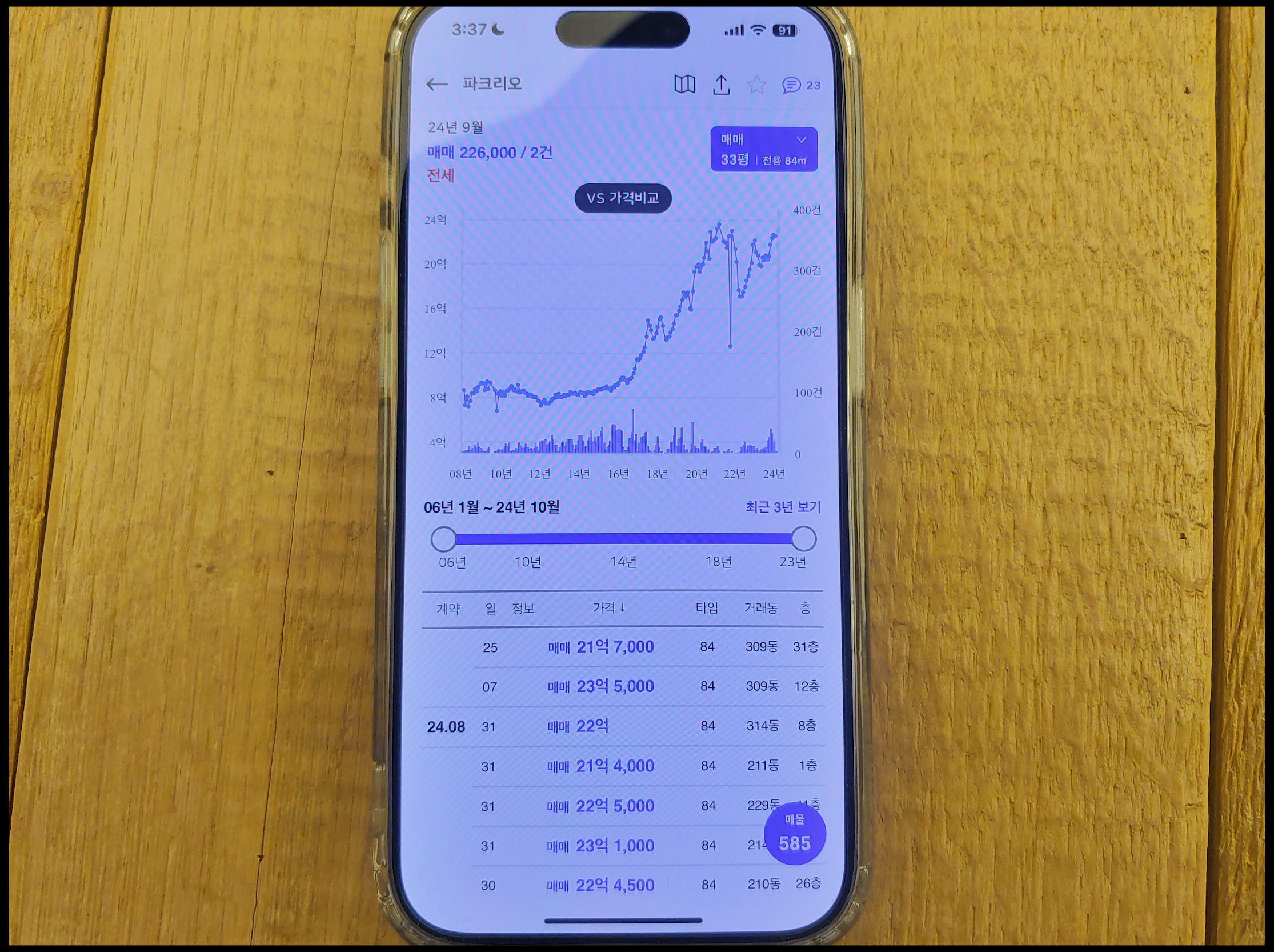 84E(15세대) : 1,748,500,000원(3층, 1세대) ~ 1,845,600,000원(11~17층, 7세대)