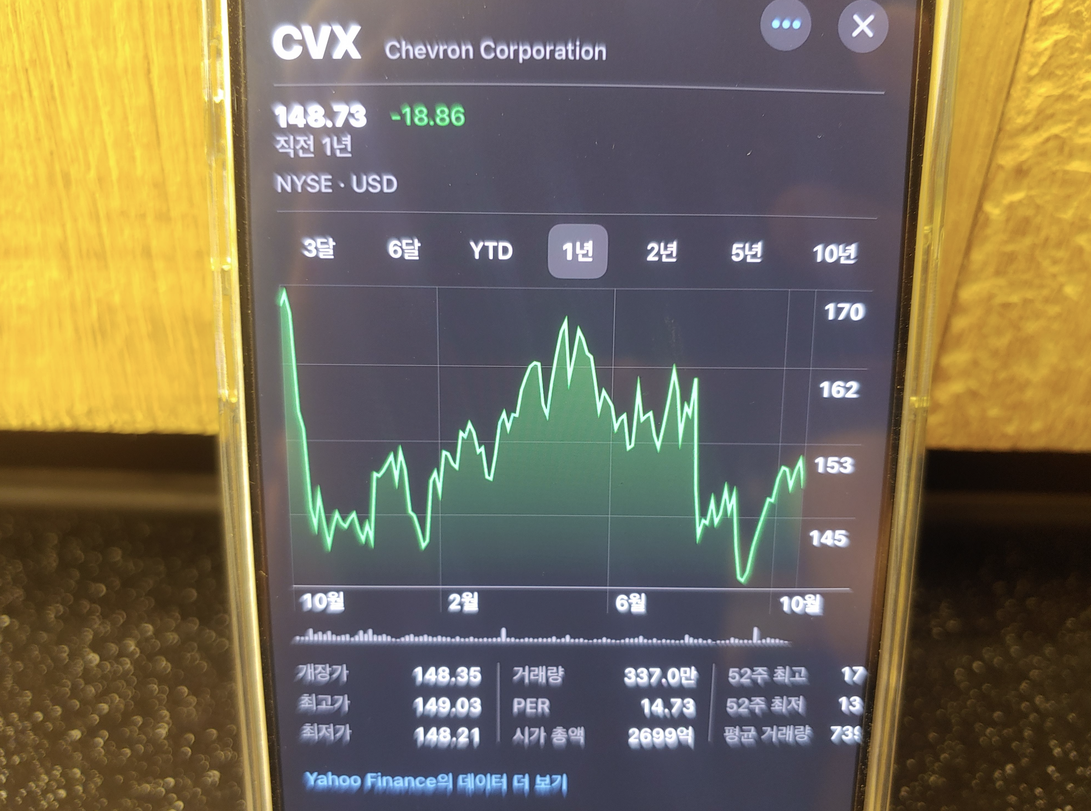 [사진 = 트럼프 관련주 에너지 및 방위산업 종목들을 꼽을 수 있습니다. 에너지 종목 중에서는 엑슨모빌 및 셰브론, 방위산업 종목 중에서는 록히드 마틴 및 노스럽 그루먼이 있습니다. 4개 종목의 지난 1년간 주가 추이 이렇습니다. 셰브론 제외하면 최근에 고점입니다. (투자 권유 아님) (C) 아이폰 주식 앱]
