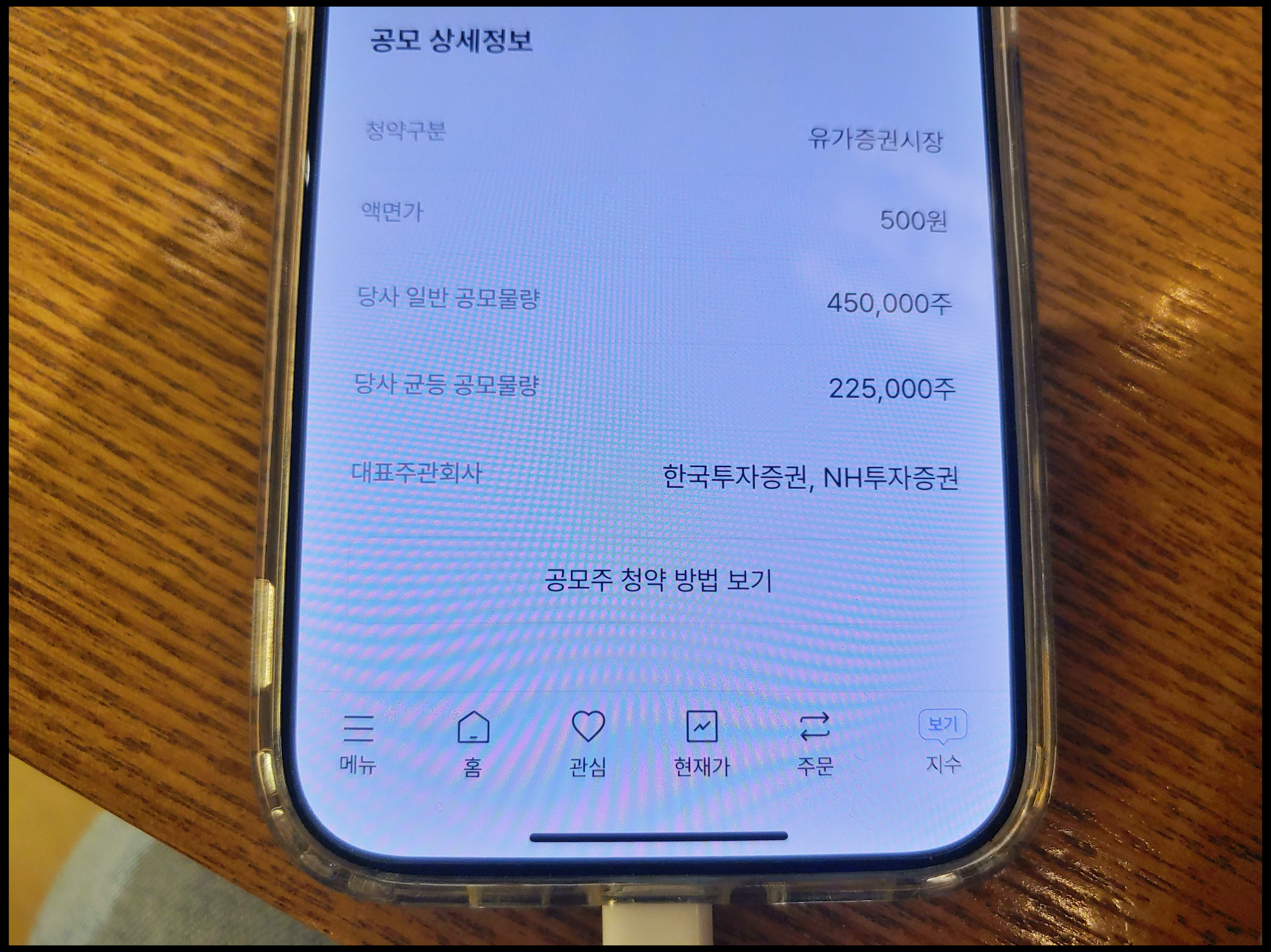 - 일반 청약자 주식 수 : 450,000주 ~ 540,000주 (한투) 300,000주 ~ 360,000주 (NH)