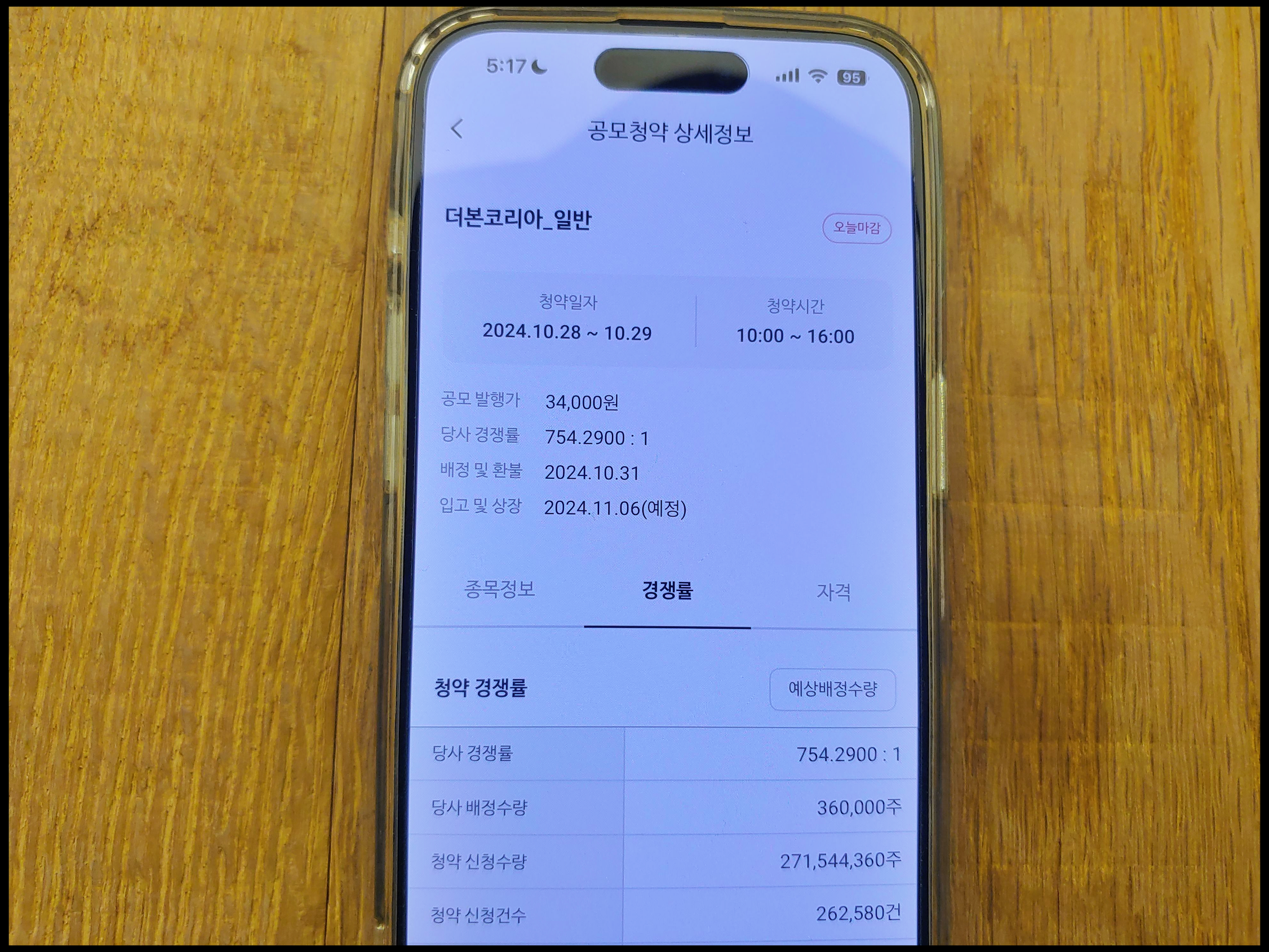 더본코리아 공모주 균등 비례 마감 상황 이렇습니다.