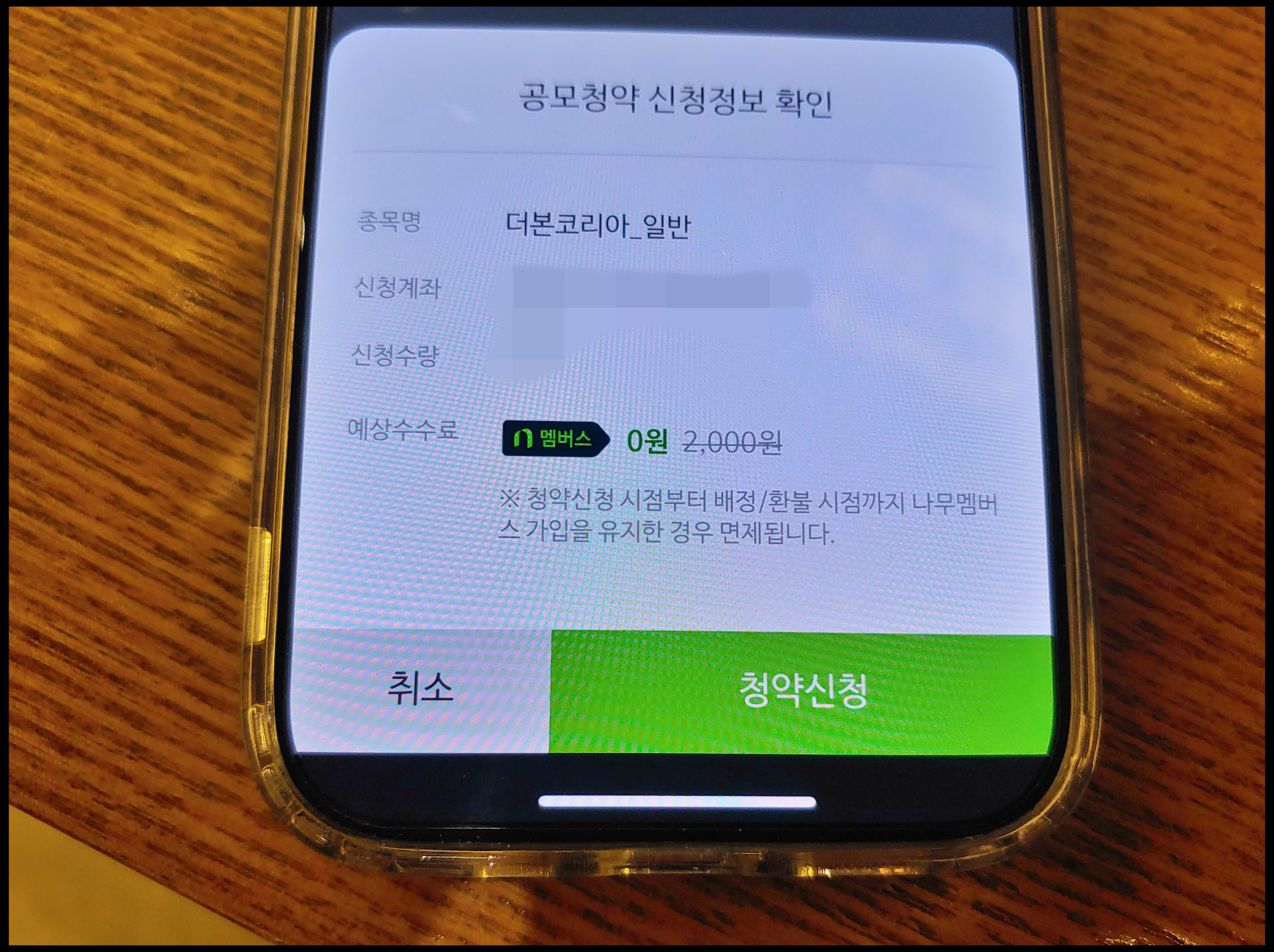 [사진 = 저는 더본코리아 공모주 청약 NH투자증권 통해서 완료했습니다. 해당 증권사의 나무멤버스 가입 시(한 달 2,900원) 첫 달 무료 혜택 누릴 수 있기 때문입니다. 이 종목의 수수료 2,000원이나 나무멤버스 가입자는 무료입니다. 또한 11월 공모주 종목들 중에 다섯 종목 주관사가 해당 증권사입니다. 제가 과연 다섯 종목 모두 청약할지는 모르겠지만, 최소 1~2개는 청약 신청할 수 있지 않을까 싶습니다. 그럴 경우 수수료 절약 가능하다고 봅니다. (C) 나무증권 앱]