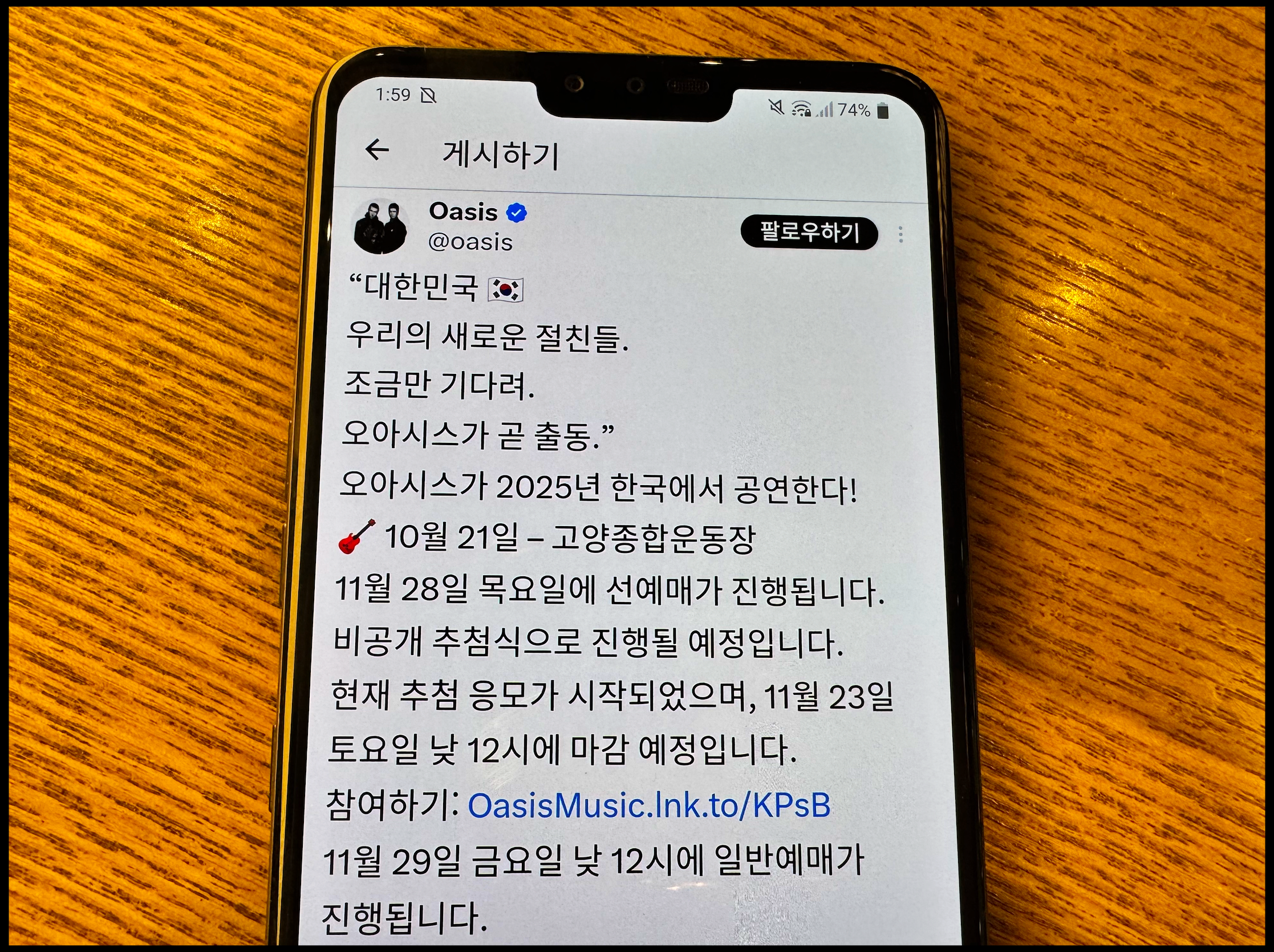 오아시스 내한 티켓팅 일정, 콘서트 좌석 가격 공개