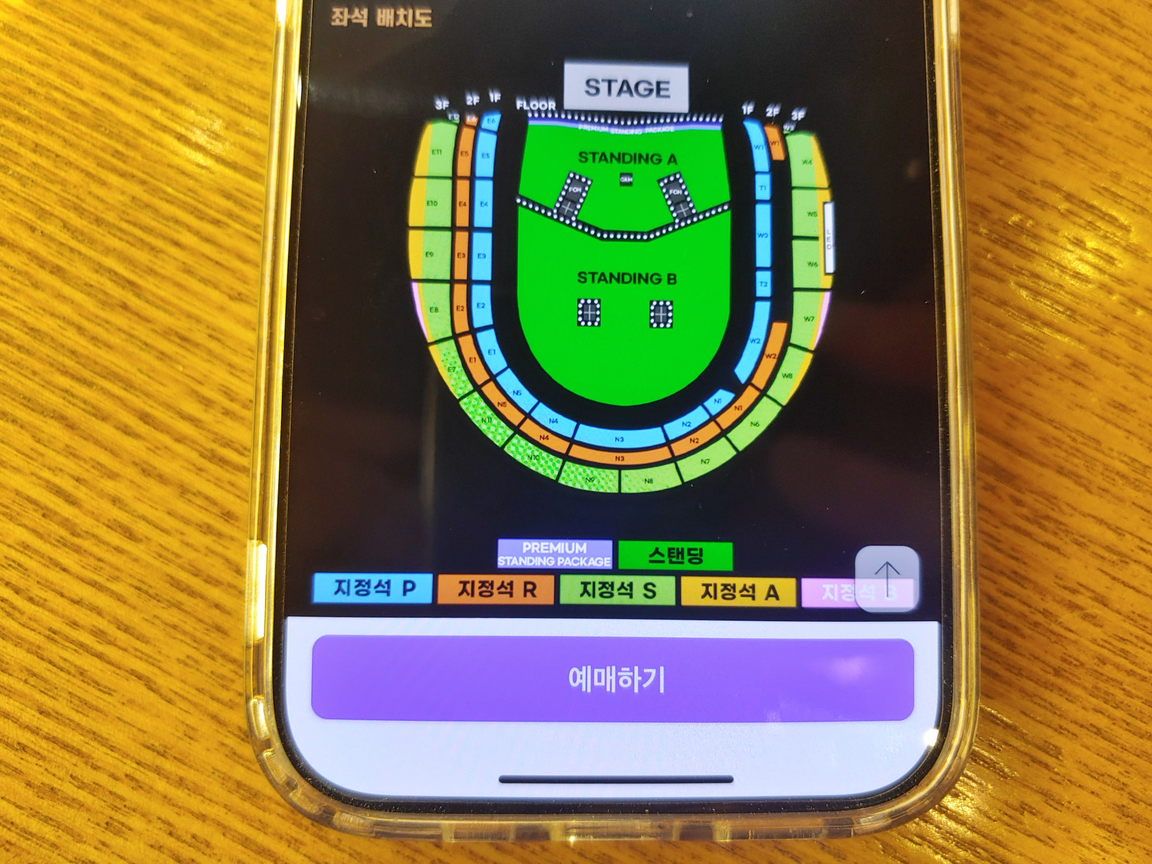 [사진 = 오아시스 내한 티켓팅 좌석 총 7구역으로 구분됩니다. 스탠딩 2구역, 지정석 5구역입니다. 스탠딩 맨 앞쪽이 프리미엄 스탠딩 패키지 구역입니다. 스탠딩석 티켓 1매, VIP 한정 머천다이즈 아이템, VIP 팔찌 구성됐습니다. (C) 인터파크 티켓 앱]