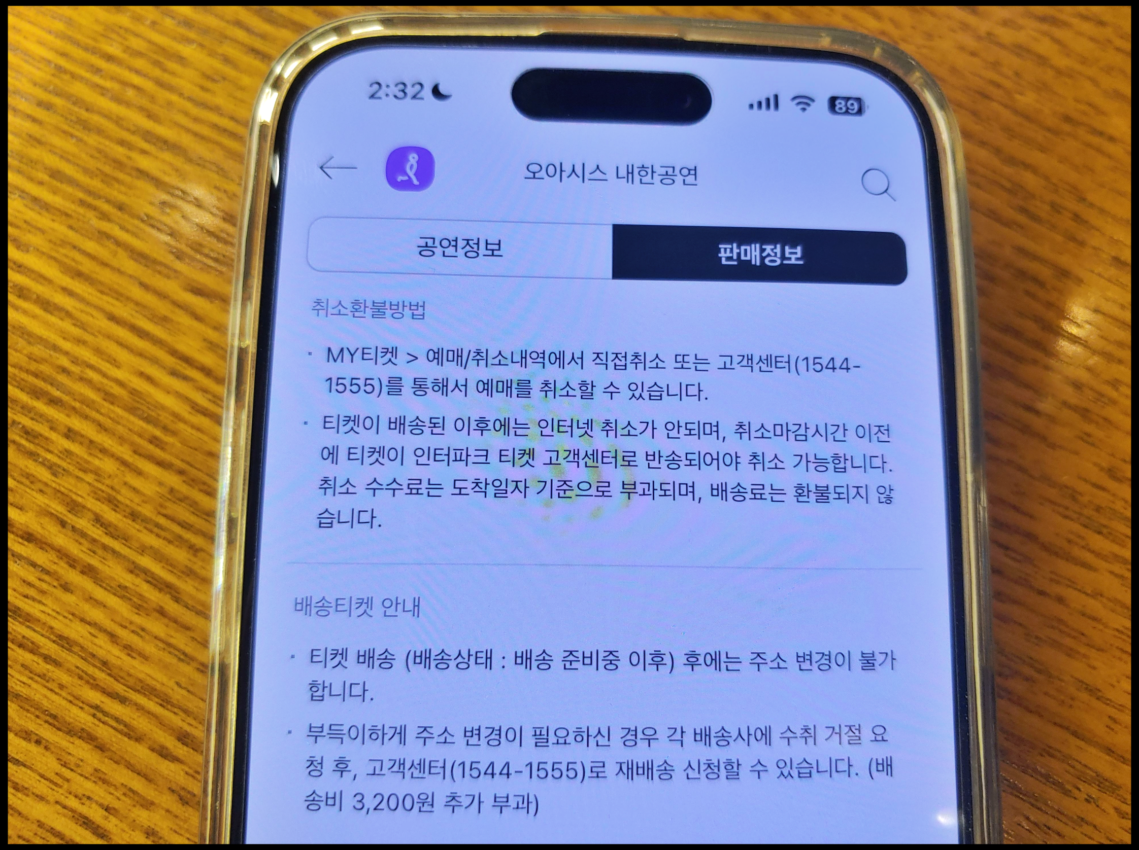 [사진 = 오아시스 내한 티켓팅 예매 수수료 장당 2,000원 및 배송료 3,200원입니다. 만약 예매를 했는데 취소하고 싶은 분이라면, 예매 후 7일 이내까지 수수료 없습니다. 그 이후 관람일 10일 전까지 장당 4,000원(티켓금액의 10% 한도) 적용된 뒤, 공연이 임박할 수록 수수료 더 높아집니다. 인터파크티켓 통해서 오아시스 내한 콘서트 취소 환불 받으려면, 해당 플랫폼 'My티켓 > 예매/취소내역' 또는 고객센터에 전화(1544-1555)를 하셔야 합니다. (C) 인터파크 티켓 앱]