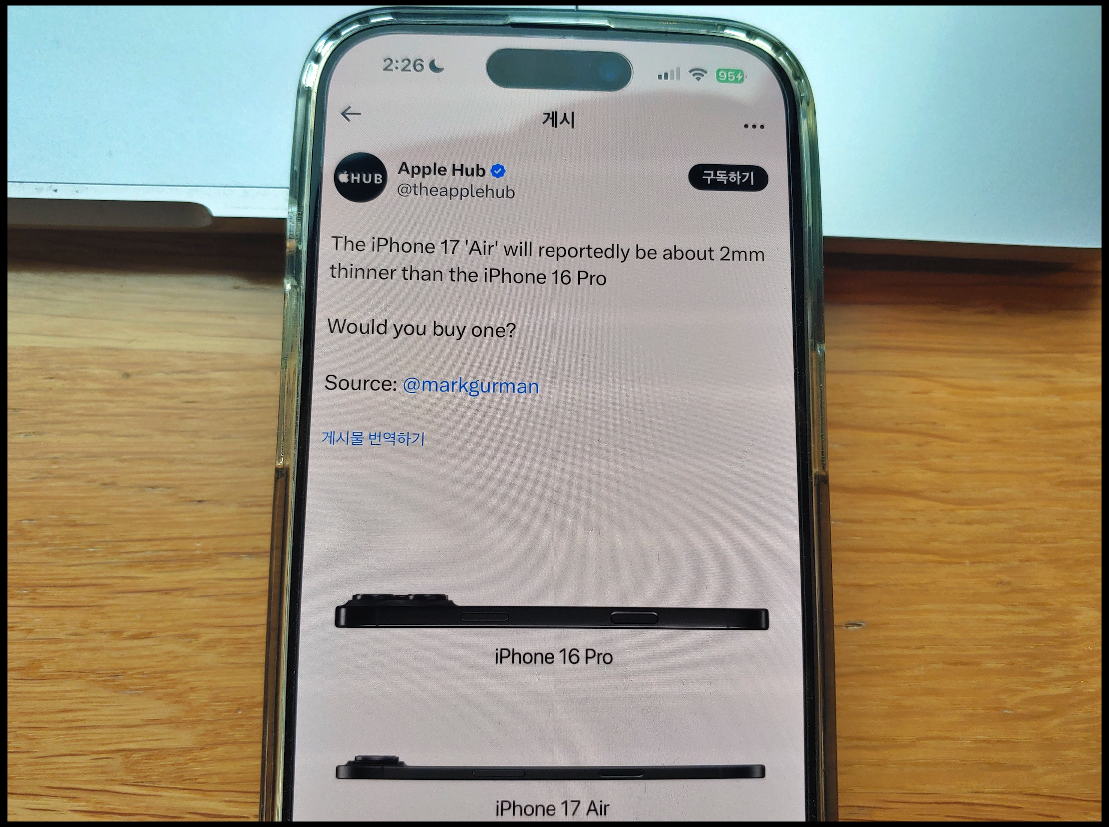 아이폰17 에어 출시일 벌써부터 궁금증 느끼는 분들이 계실 것 같습니다. 지난해 하반기 아이폰16 시리즈 등장한지 얼마되지 않아 해당 모델과 관련된 루머가 해외 IT 미디어들을 통해 제기되면서 사람들의 관심을 끌기 시작했습니다. 지금도 관련 루머가 나오는 모습을 보면 새로운 버전의 아이폰 나타날 기대감 작용합니다. 아직 등장하지 않은 제품이라 과연 네이밍이 '에어(Air) vs 슬림(Slim)' 중에서 무엇이 될지는 알 수 없습니다. 그럼에도 두께가 얇은 아이폰이 나올 가능성이 있을지 모르겠다는 생각을 해봅니다.