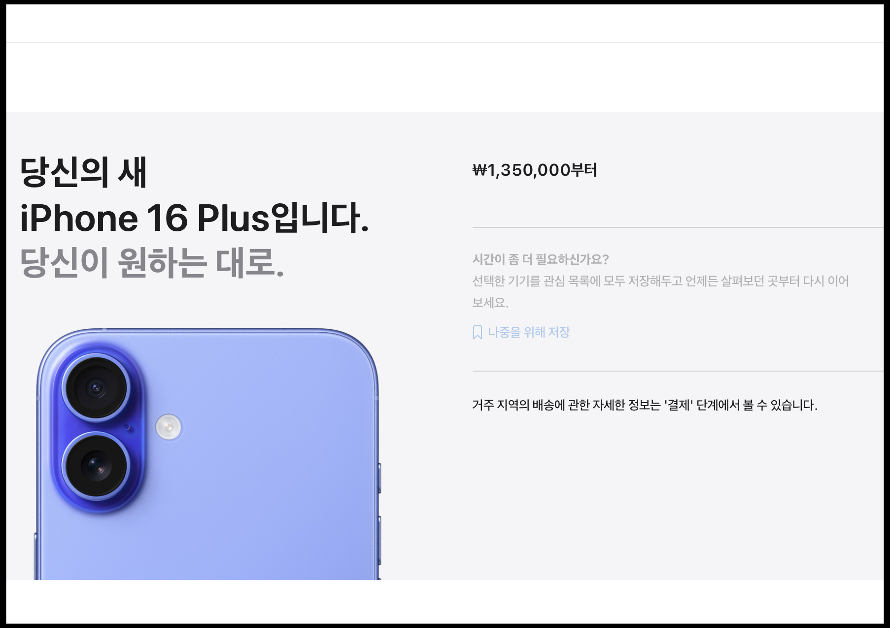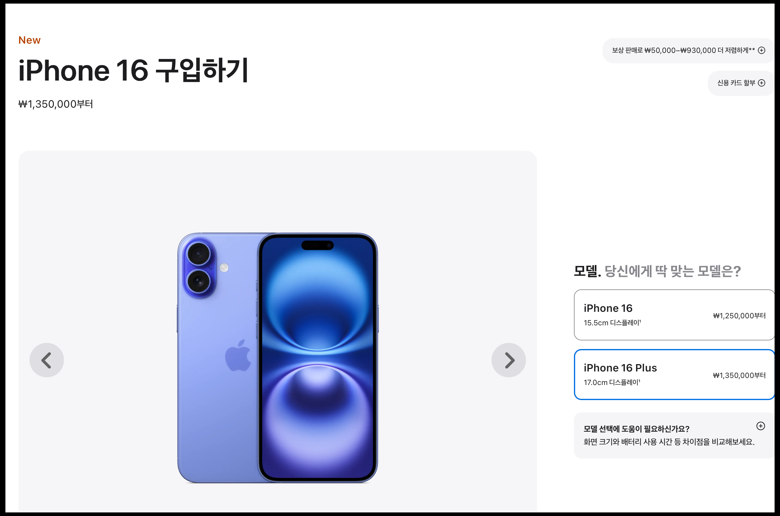 [사진 = 지난해 9월 출시된 아이폰16 플러스. 어쩌면 플러스 모델은 아이폰17 에어 등장에 의해 단종 가능성 있습니다. 만약 이 제품이 한동안 마지막 플러스 모델이 된다면, 아이폰13 미니처럼 중고폰으로서 인기를 끌게 될지 주목됩니다. 아이폰13 미니 같은 경우 마지막 미니 모델이자 특유의 작은 크기 때문에 지금도 중고폰으로 꽤 주목 받는 것으로 압니다. (C) 애플 공식 홈페이지(apple.com)]