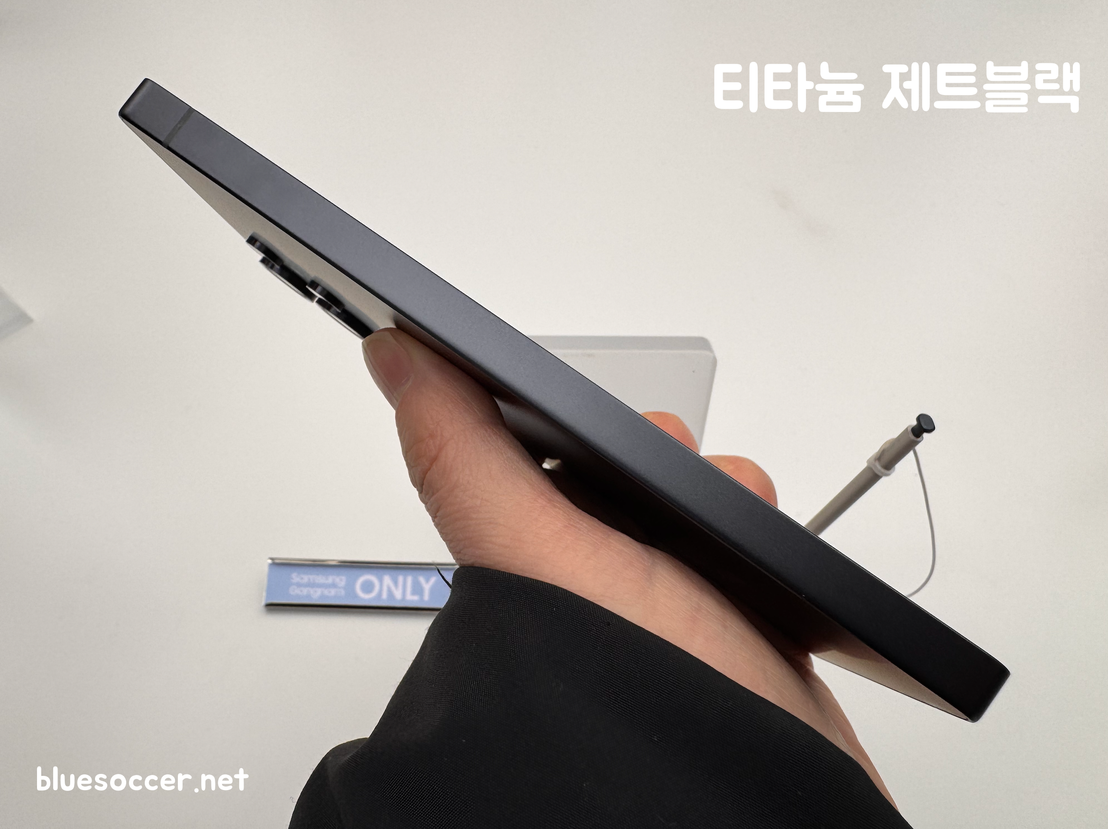 갤럭시 S25 울트라 티타늄 제트블랙 실물 모습입니다. 색상 특유의 톤이 진하게 표현됐습니다. 지금까지 출시되었던 스마트폰들 중에서 블랙 색상은 흔하게 볼 수 있지만, 해당 색상이 꾸준히 나온다는 것은 그만큼 소비자들에게 많이 선택되는 존재임을 알 수 있습니다. 무난하게 쓸 수 있는 특징이 있기 때문입니다. 갤럭시 S25 울트라 색상 블랙 계열이 2종이나 있습니다. 삼성닷컴 및 삼성 강남 매장에서만 볼 수 있는 티타늄 제트블랙은 기본 모델인 티타늄 블랙보다 더 진하게 표현된 차이점이 있습니다. 모서리 빛깔도 서로 다릅니다. 만약 블랙 계열 색상 알아보시는 분이라면 이러한 차이점 인지하시면 좋습니다.