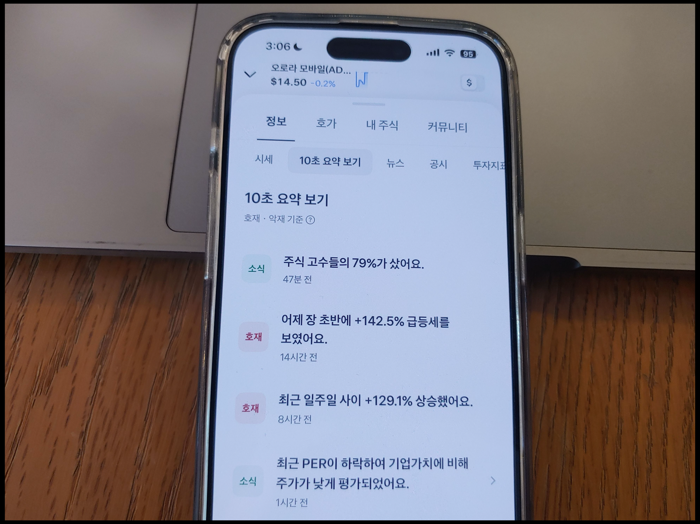[사진 = 딥시크 관련주 오로라 모바일 ADR 입니다. 1월 27일에 14.50달러로 마쳤습니다. 그 이전에는 5달러대에 머물러 있었는데 어느 순간 갑자기 크게 올랐습니다. 장 초반 142.5% 급등세 나타냈습니다. 국내의 토스 증권 내에서는 주식 고수들의 79%가 샀다고 합니다. 다만, 해당 종목이 과연 어떤 추이를 나타낼지는 알 수 없습니다. 딥시크 쇼크가 일시적인지 아닌지 아직은 알 수 없기 때문입니다. (C) 토스 앱]