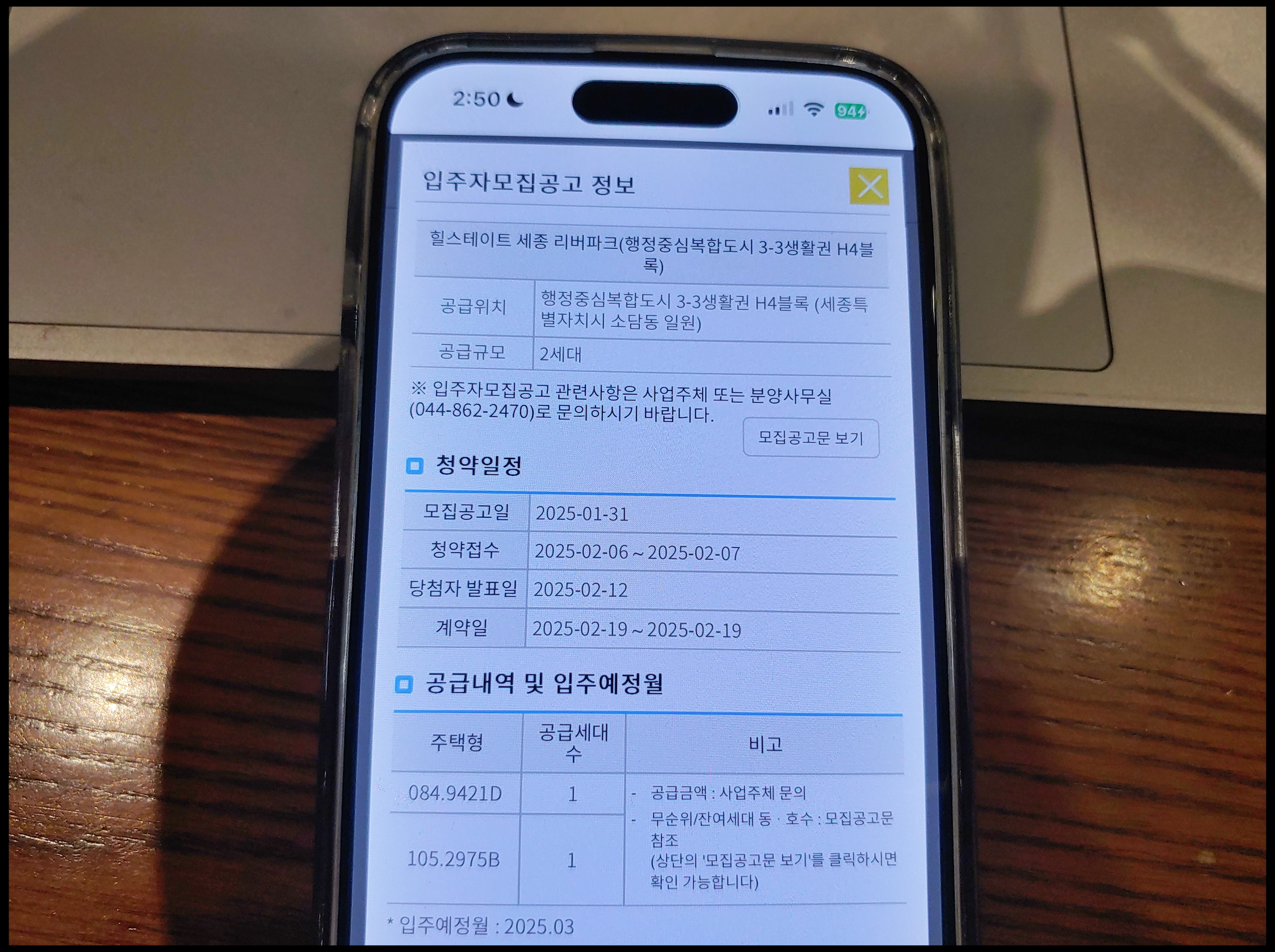 - 입주시기 : 2025년 3월 12일(잔금 납부 완료 후 입주하는 조건)