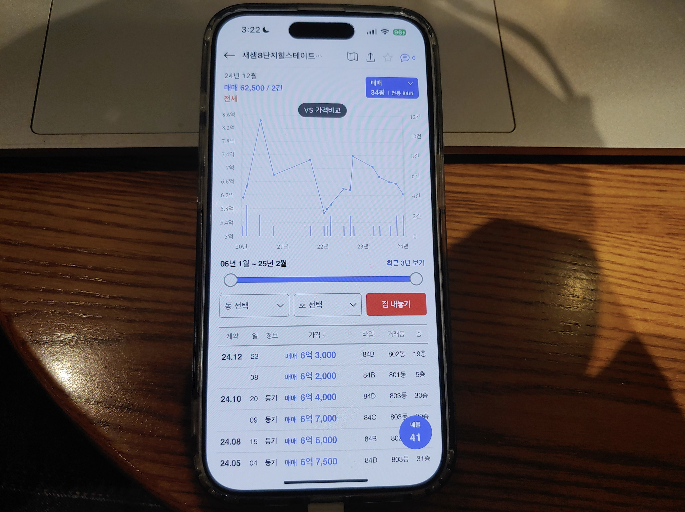 8단지 802동 84타입 최근 거래 : 6억 3,000만 원(2024년 12월) / 시세 차익 3억 원