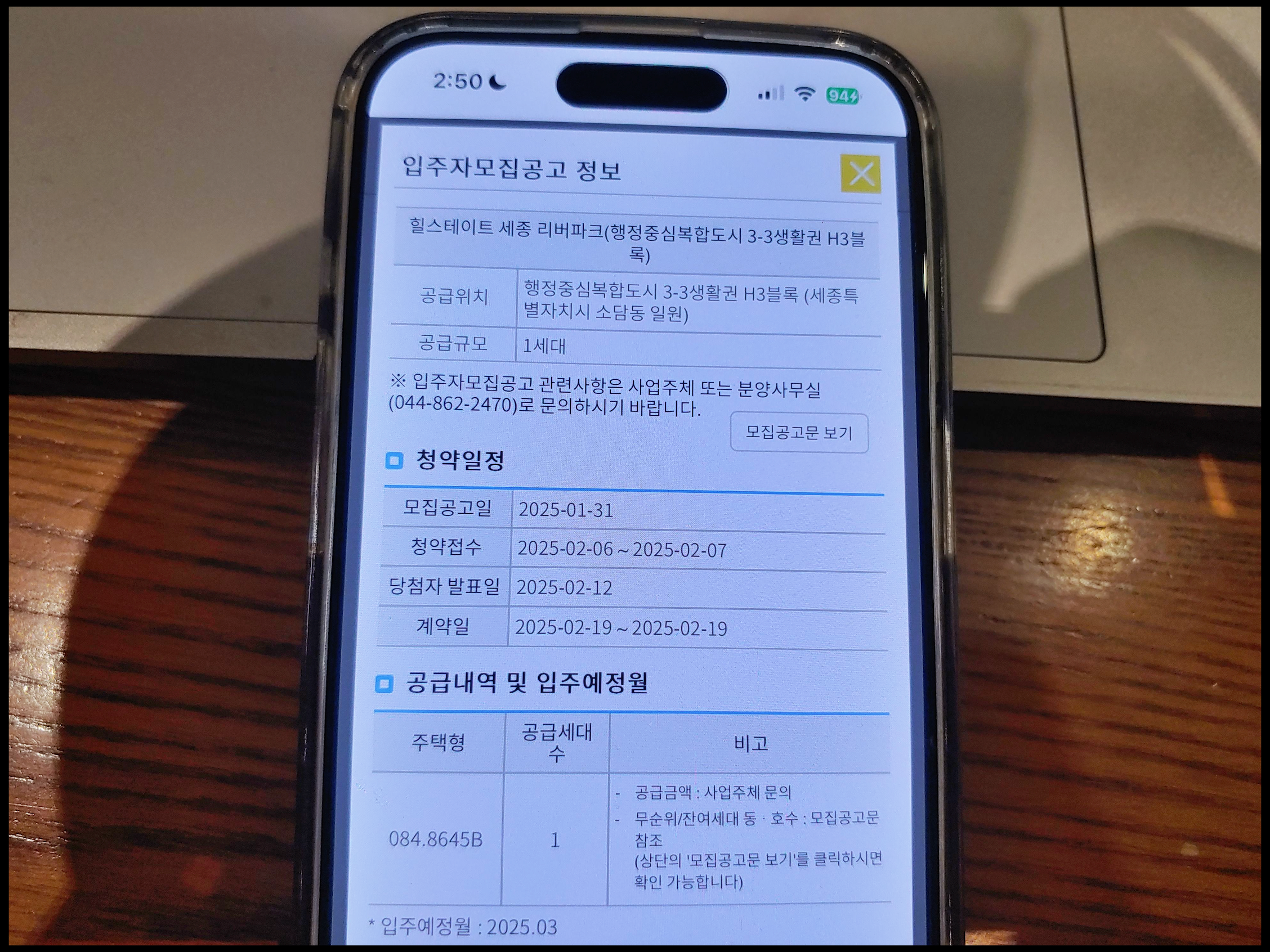- 입주시기 : 2025년 3월 12일(잔금 납부 완료 후 입주하는 조건)