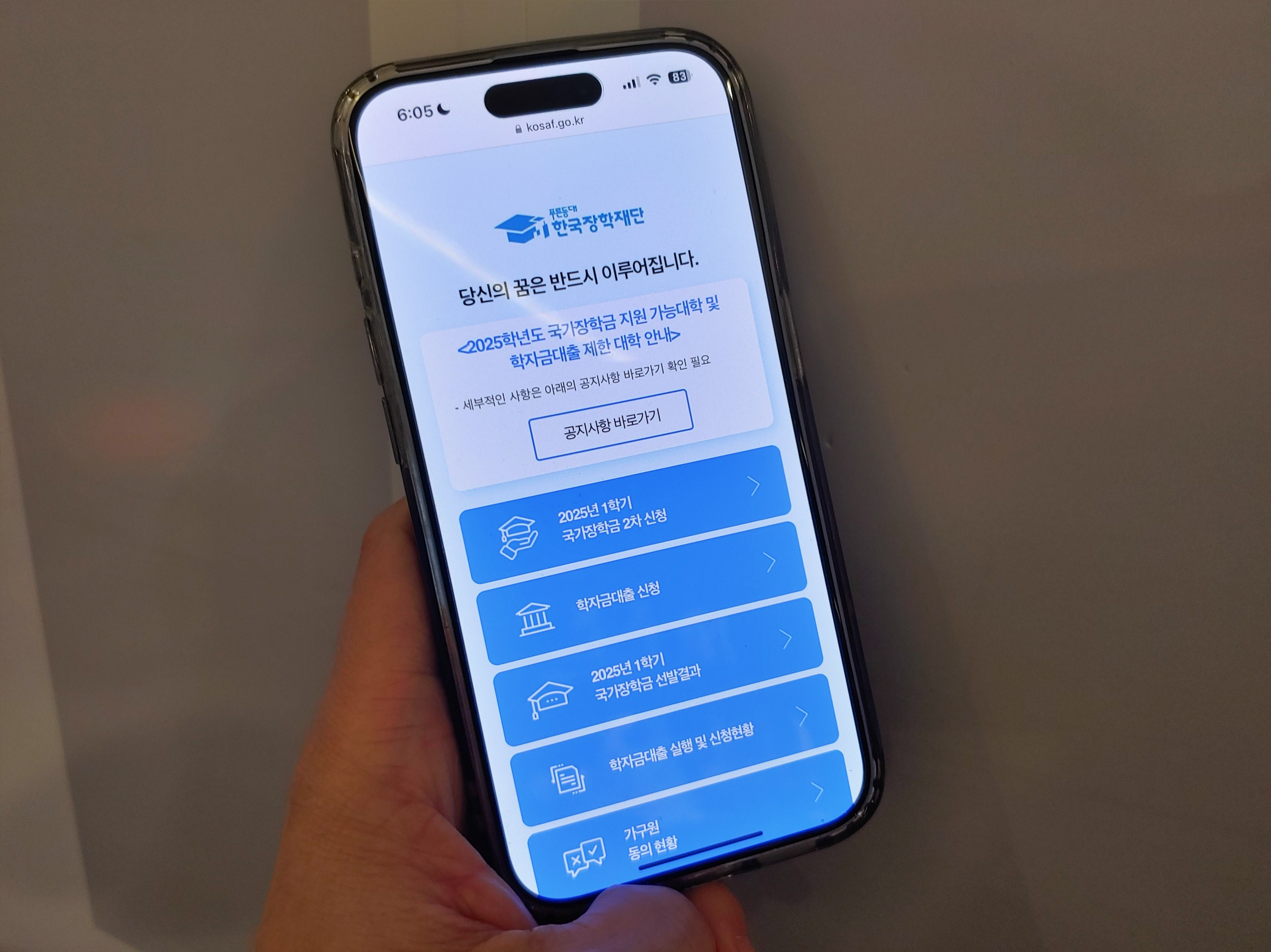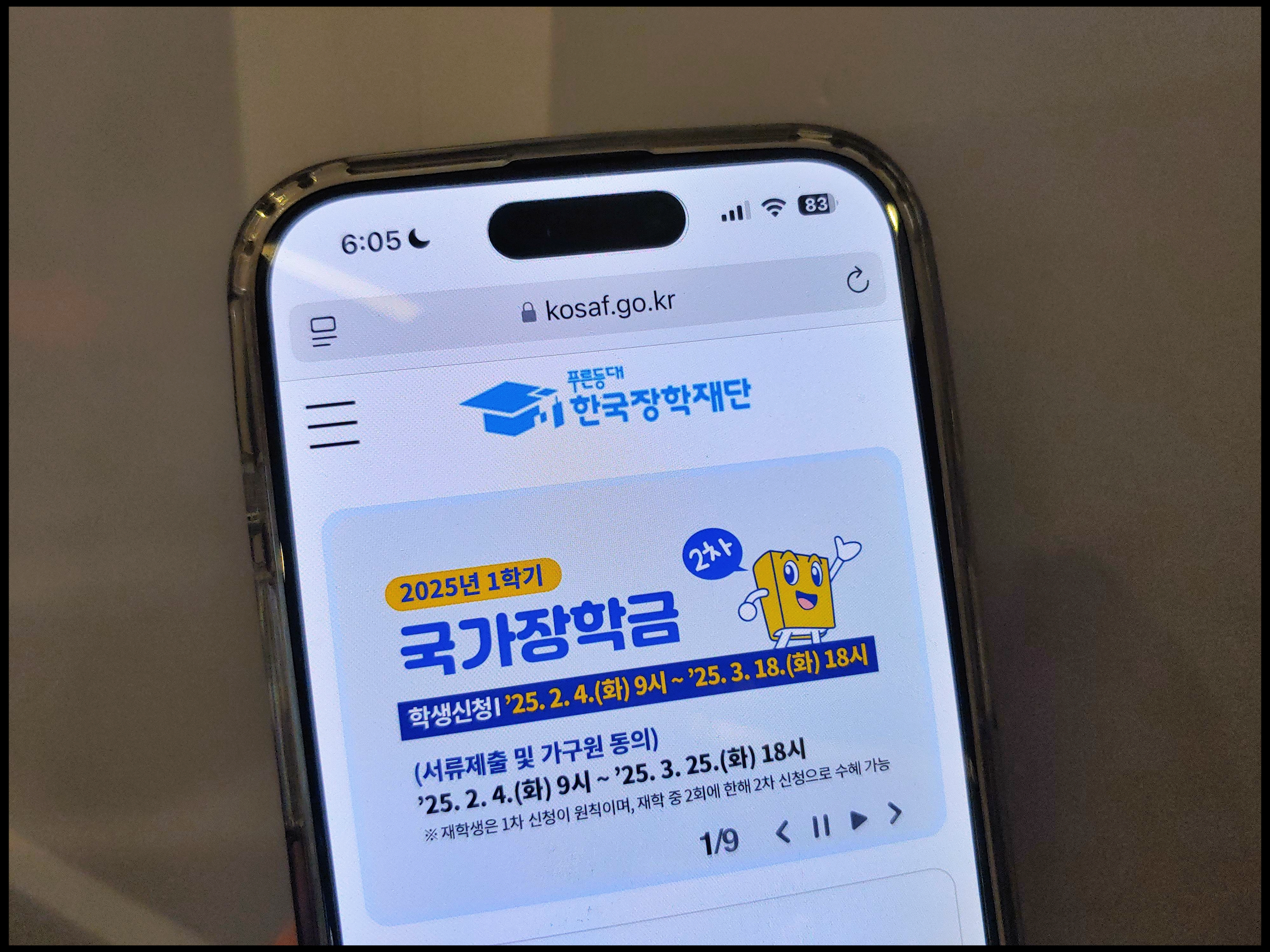 [사진 = 이미 2025 국가장학금 1차 신청기간 끝났습니다. 2차는 3월 18일까지 진행됩니다. 재학생은 1차 신청이 원칙이었으나 2차 신청은 재학 중 2회까지만 구제신청 형태로 가능합니다. 만약 1차 신청을 놓친 재학생 분이라면 국가장학금 구간 확인하면서 이 부분 참고할 필요가 있습니다. 아울러 한국장학재단 홈페이지에서는 '나의 학자금 지원구간 확인' 메뉴를 통해서 자신이 몇 구간에 해당하는지 파악할 수 있습니다. (C) 한국장학재단 공식 홈페이지(kosaf.go.kr)]