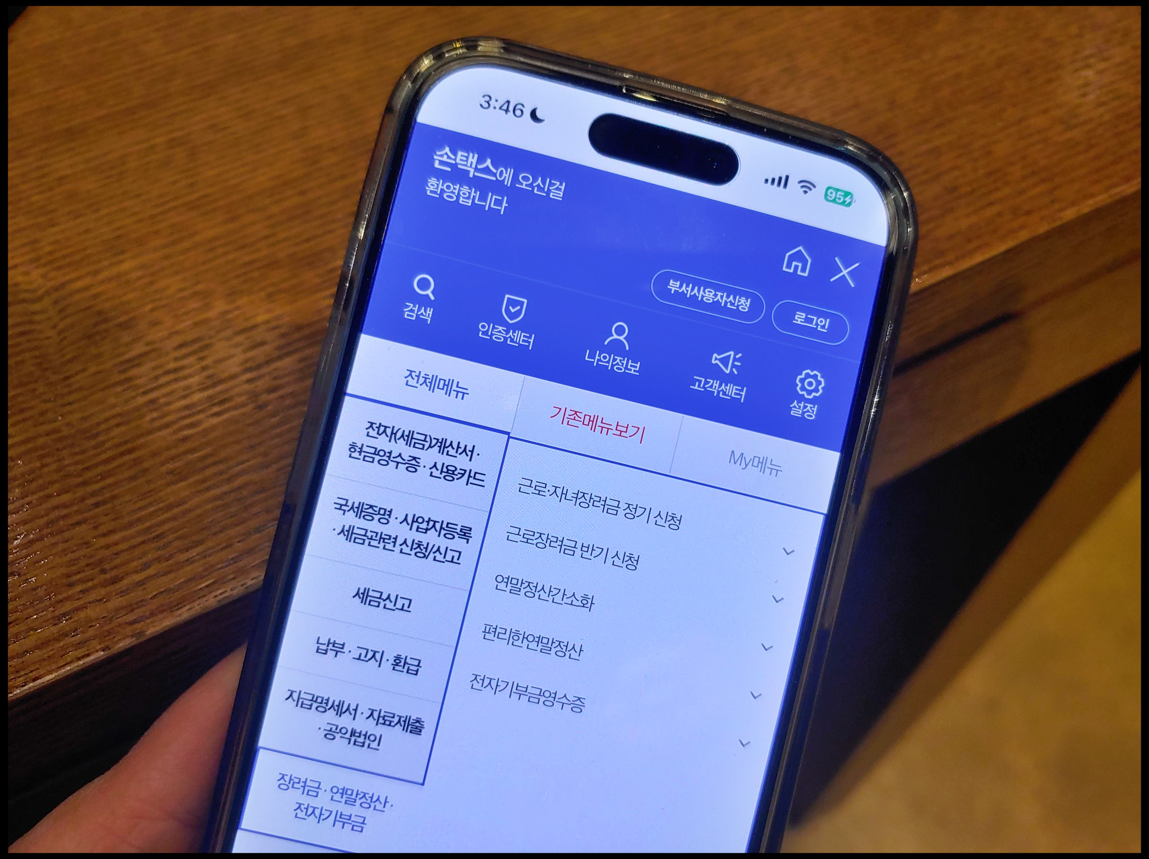 [사진 = 근로장려금 대상 포함되시는 분은 신청기간 초기에 카카오톡 등을 통해서 안내문 받게 됩니다. 그럴 경우 국세청 홈택스 홈페이지 접속하셔서 '장려금, 연말정산, 기부금' 메뉴내에 있는 '근로, 자녀장려금 정기 신청' 항목으로 이동하셔서 로그인 이후에 신청 진행하시면 됩니다. 모바일에서는 손택스 앱에서도 가능합니다. (C) 손택스 앱]