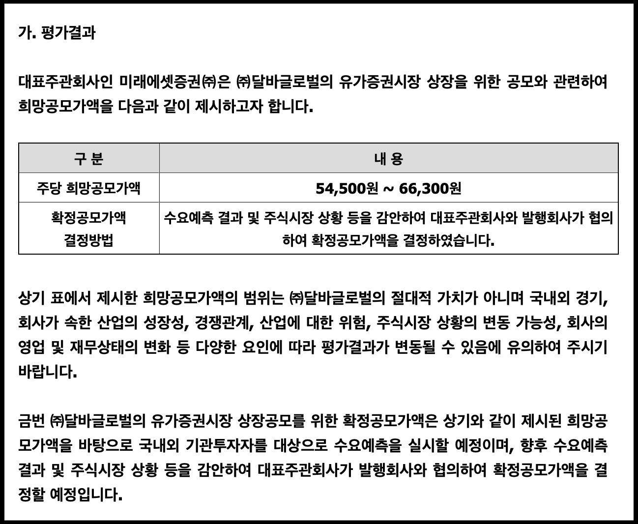 - 희망 공모가 밴드 : 54,500원 ~ 66,300원