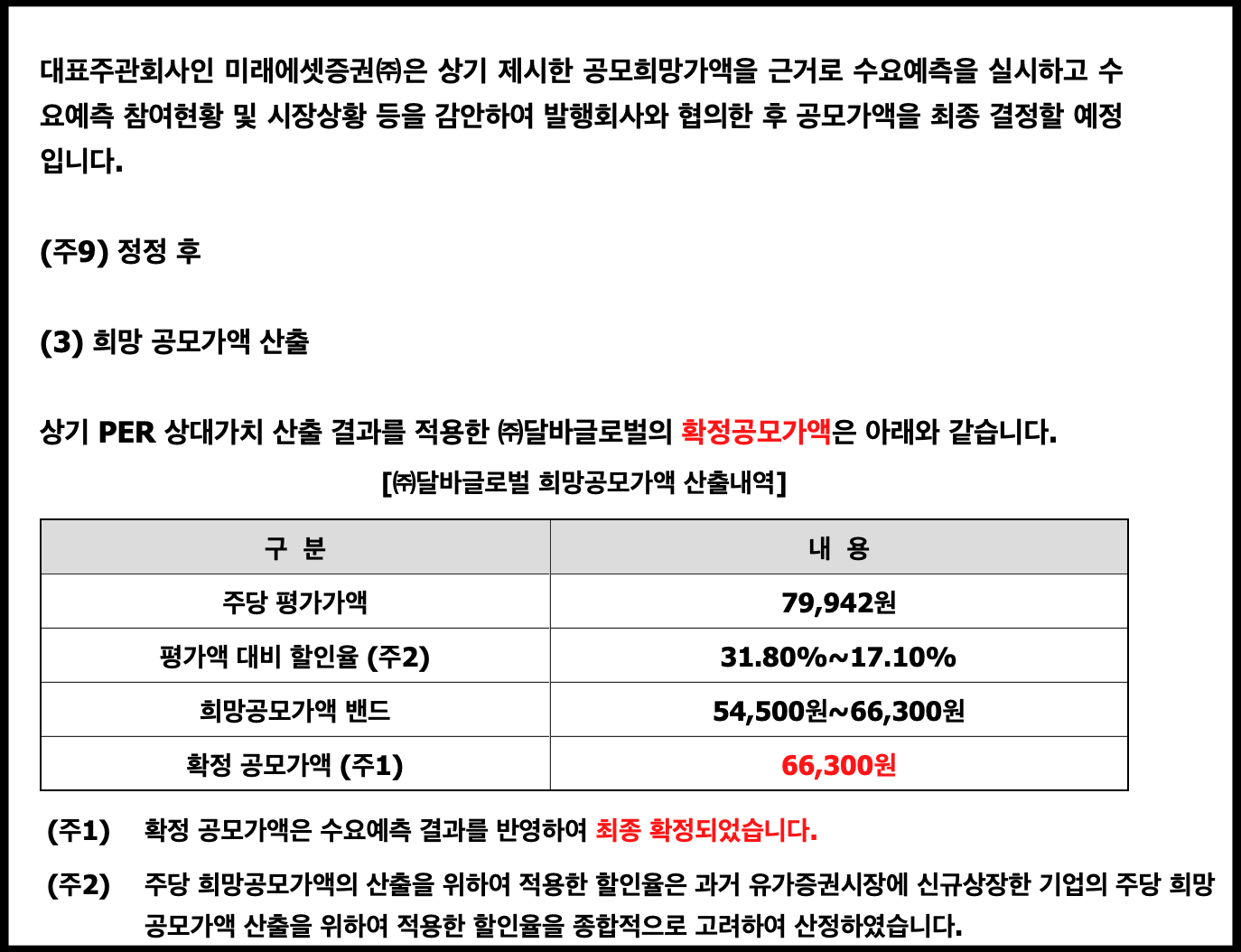 [사진 = 이 종목의 최종 공모가 66,300원입니다. (C) DART 공식 홈페이지]