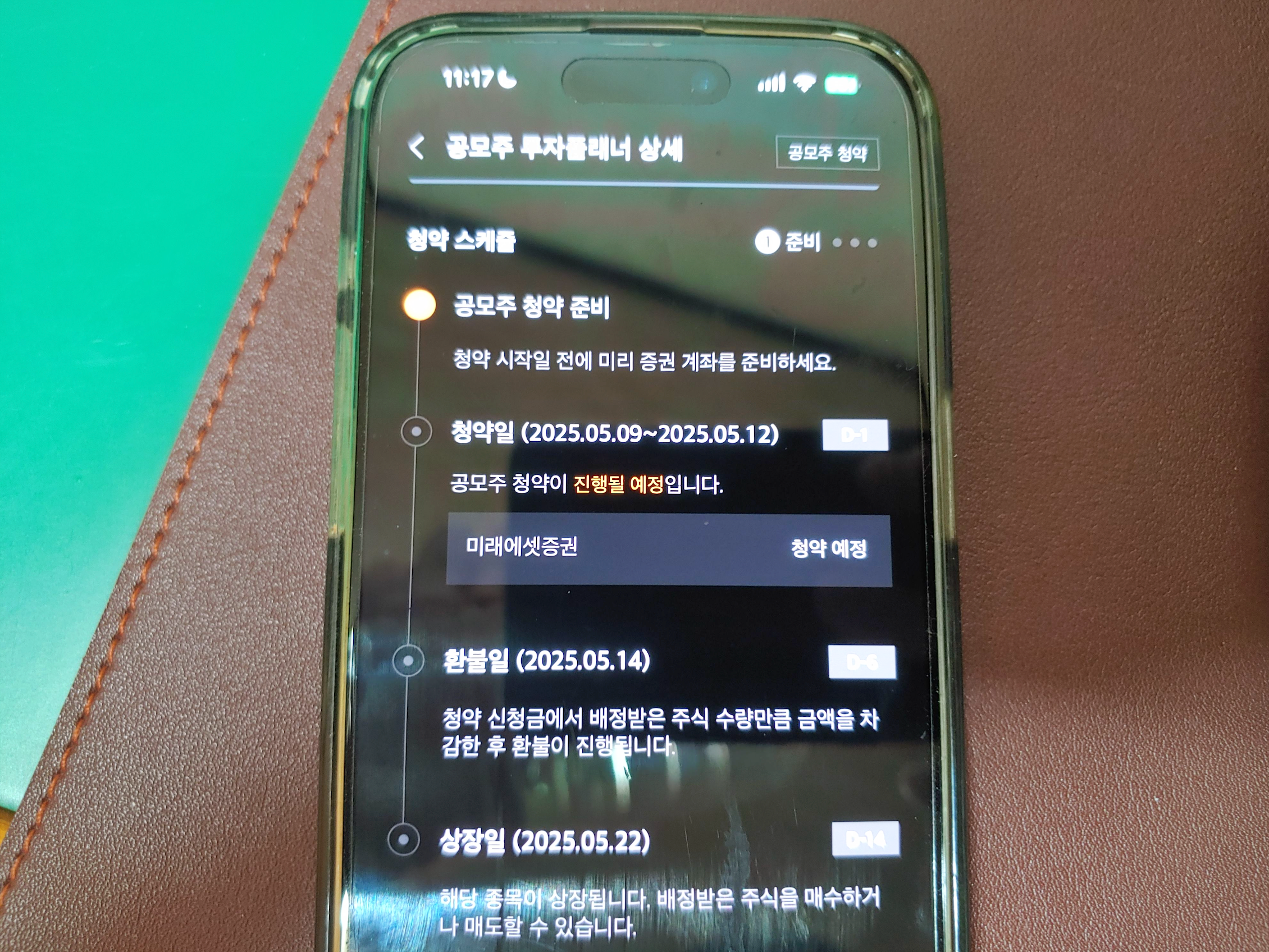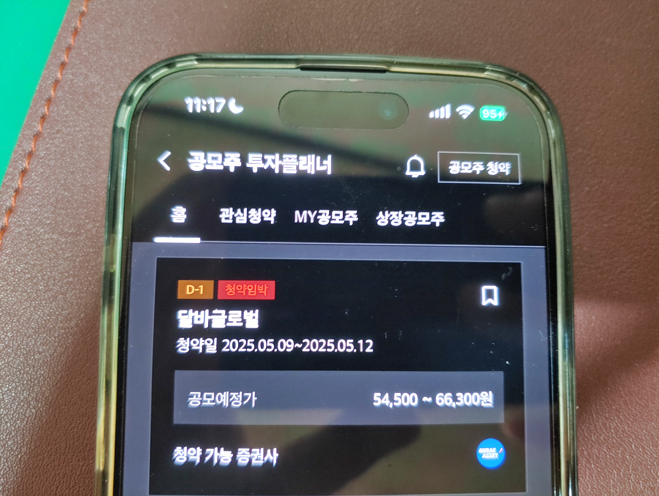 [사진 = 달바글로벌 주관사 미래에셋증권입니다. 청약일 5월 9일 금요일, 12일 월요일입니다. 환불일 14일 수요일이며, 청약일과 2일 간격입니다. 아마 이 부분이 비례 배정 노리시는 분들에게는 부담이 적을 것 같습니다. 상장일 5월 22일 목요일입니다. 올해 세 번째 코스피 상장 예정인 IPO(기업공개) 종목입니다. (C) 미래에셋증권 앱]