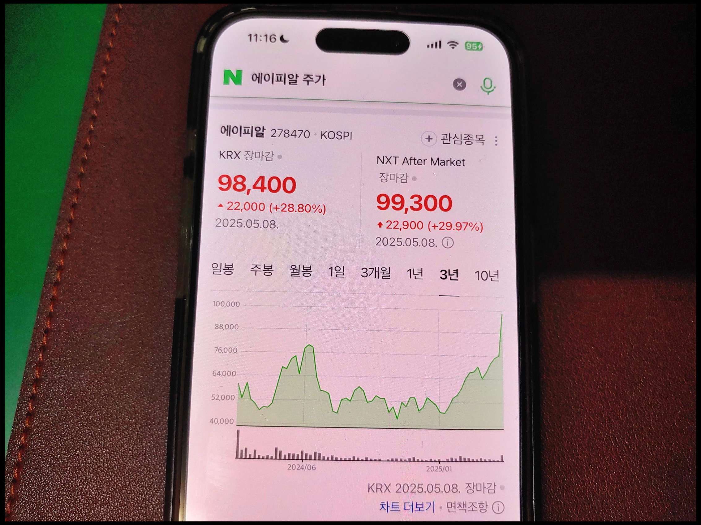 [사진 = 달바글로벌 수요예측 결과했던 5월 8일은 에이피알 주가 30% 올랐던 날입니다. 장마감 28.80% 올랐는데 애프터장에서 29.97% 오르면서 반올림 시 30%가 됩니다. 99,300원에 장을 마쳤습니다. 알고보니 지난해 초 상장 이후 역대 최고가 입니다. 달바글로벌이 증권신고서 제출했을 때 최종 비교기업 중에 한 곳으로 에이피알을 꼽았습니다. 이러한 추이는 달바글로벌 상장 기대감 나타내는 요소로 꼽을 수 있습니다. (C) 네이버 앱]