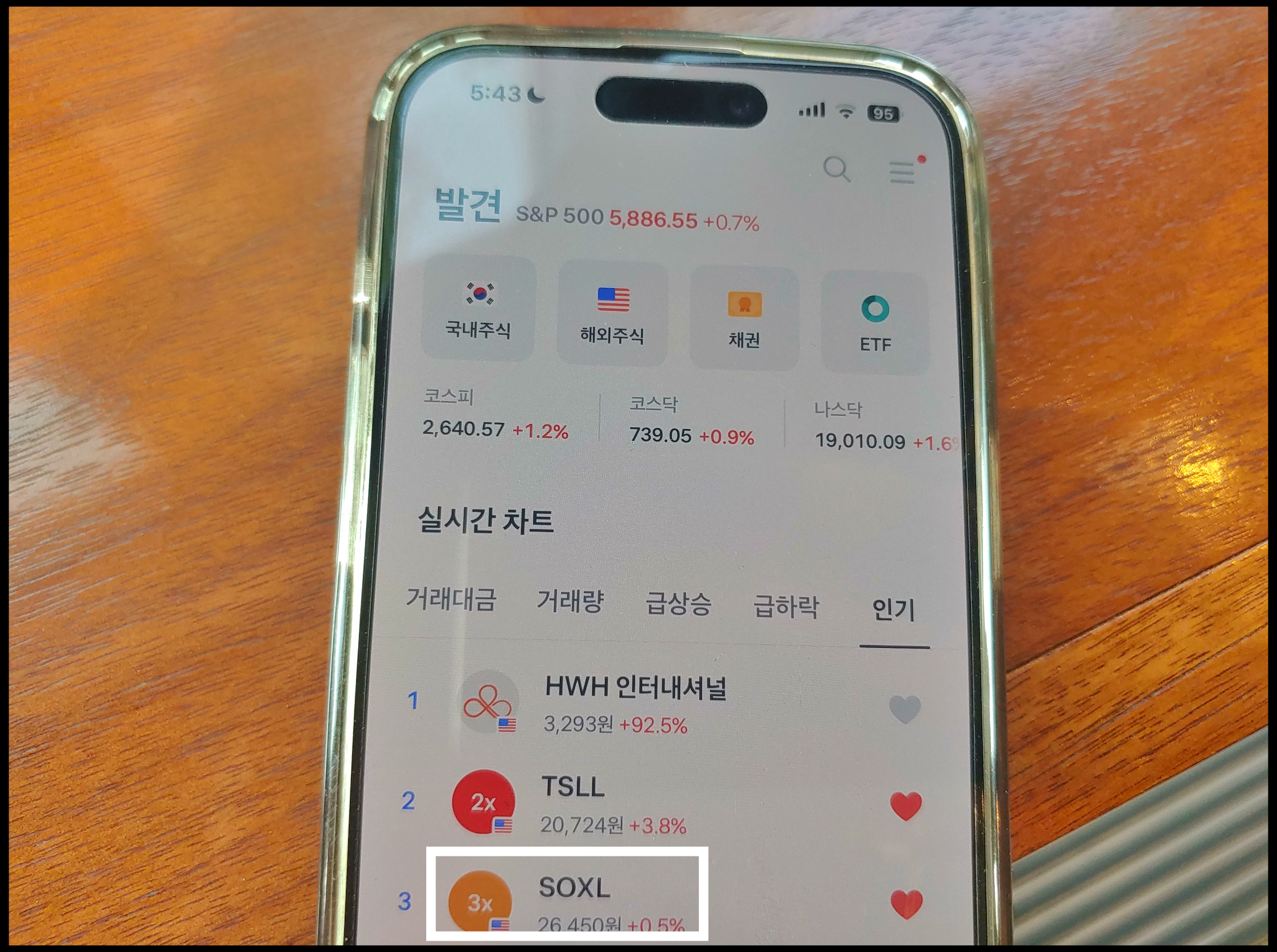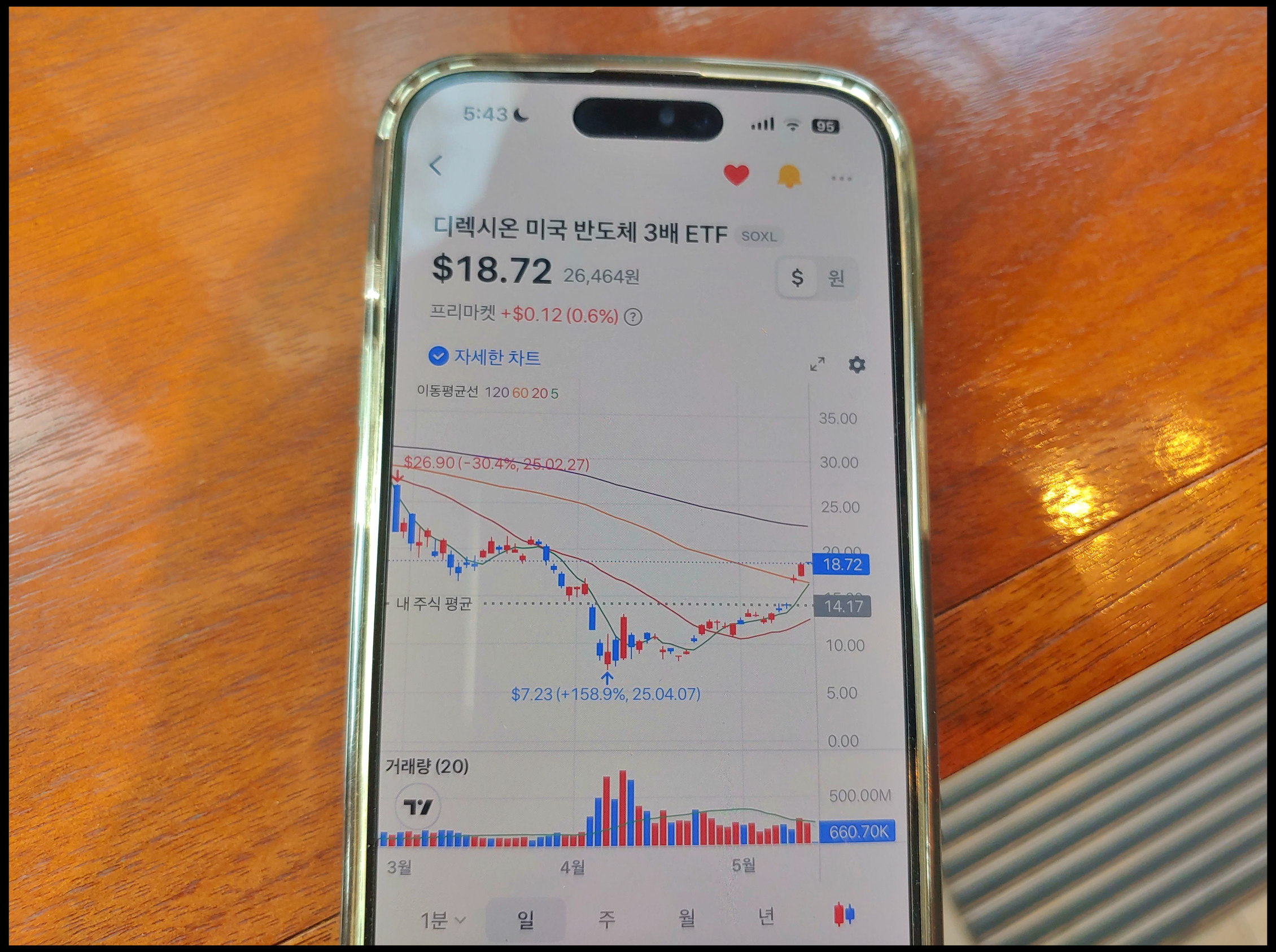 [사진 = 엔비디아 비중이 높은 SOXL ETF는 토스증권 실시간 차트 인기 3위 기록중입니다. 현재 18.73달러이며 4월 저점이었던 7.23달러에 비해 2배 이상 올랐습니다. 결국 지난달 이 종목 7~8달러에 매수하셔서 지금까지 보유하셨던 분들이 승자입니다. 2배 이상의 수익을 올렸기 때문입니다. 물론 해당 ETF는 변동성이 높으므로 투자 여부 신중하게 생각하셔야 합니다. 오를 때는 3배 오르지만, 내릴 때는 3배 손실을 내는 종목입니다. (C) 토스 앱]