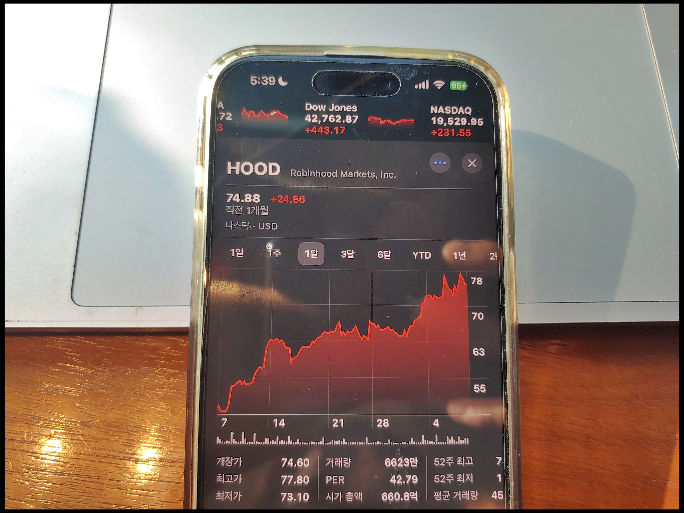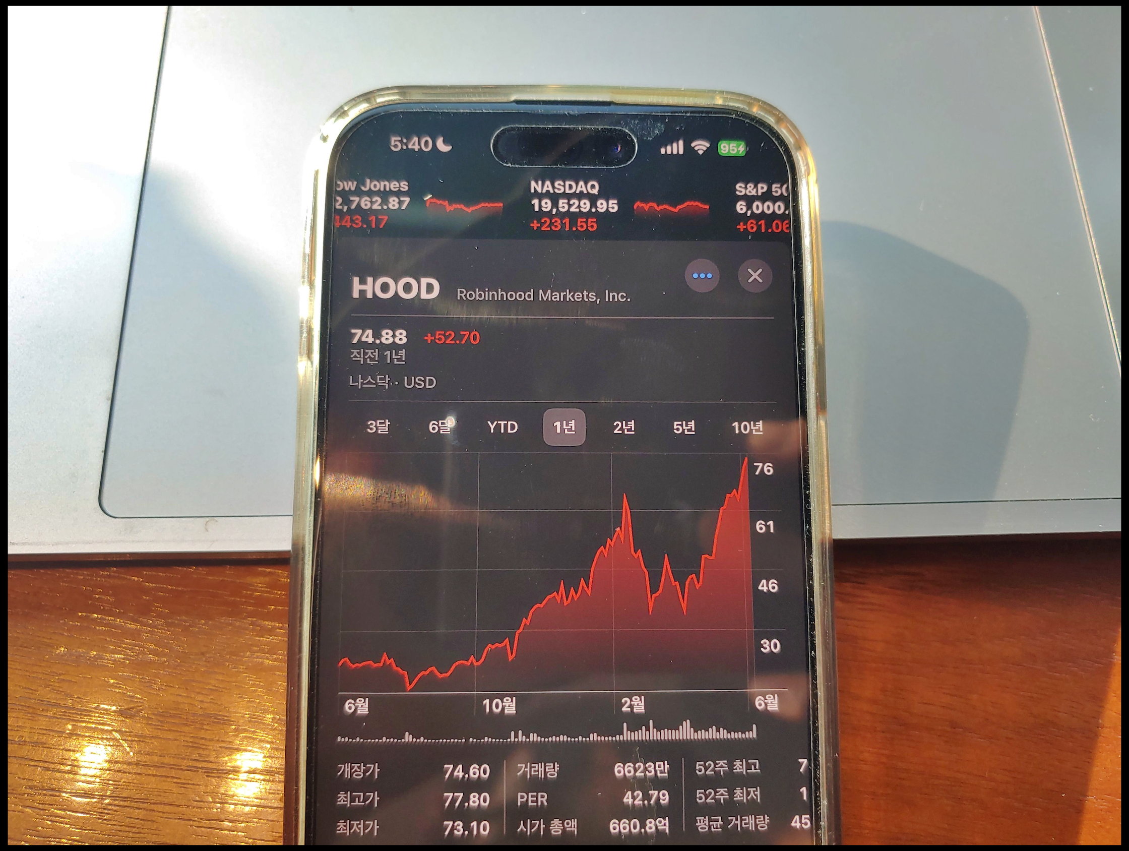 (1) 로빈후드(HOOD) : 6월 6일 74.88달러(+3.27%) 암호화폐 거래 플랫폼