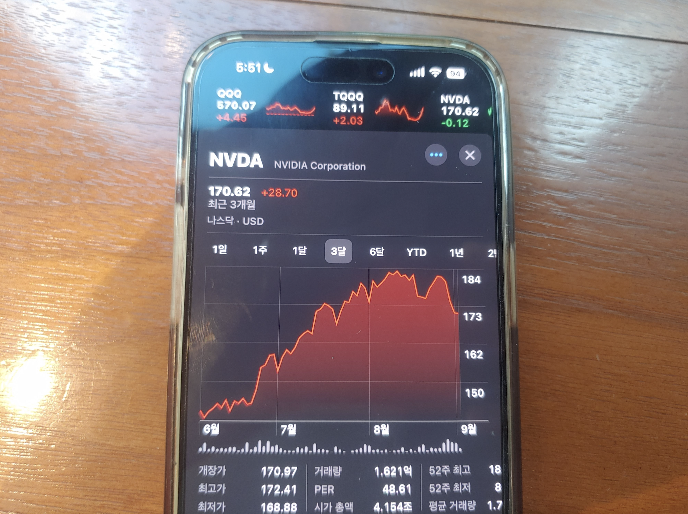 [사진 = 엔비디아, 팔란티어 최근 3개월 주가 흐름. 불과 얼마전까지 잘 나갔던 종목들입니다. 서로 180달러 넘었던 적이 있습니다. 과연 어느 종목이 200달러 먼저 돌파할지 기대하는 시선도 있었는데, 오히려 최근에 주가 흐름이 지지부진합니다. AI 시대에 접어든 만큼, 두 종목 매수하려는 분들의 심리는 여전히 높으나 이에 저항하는 흐름도 만만치 않습니다. 9월은 미국주식하기 힘든 시기인가 봅니다. (C) 아이폰 주식 앱]