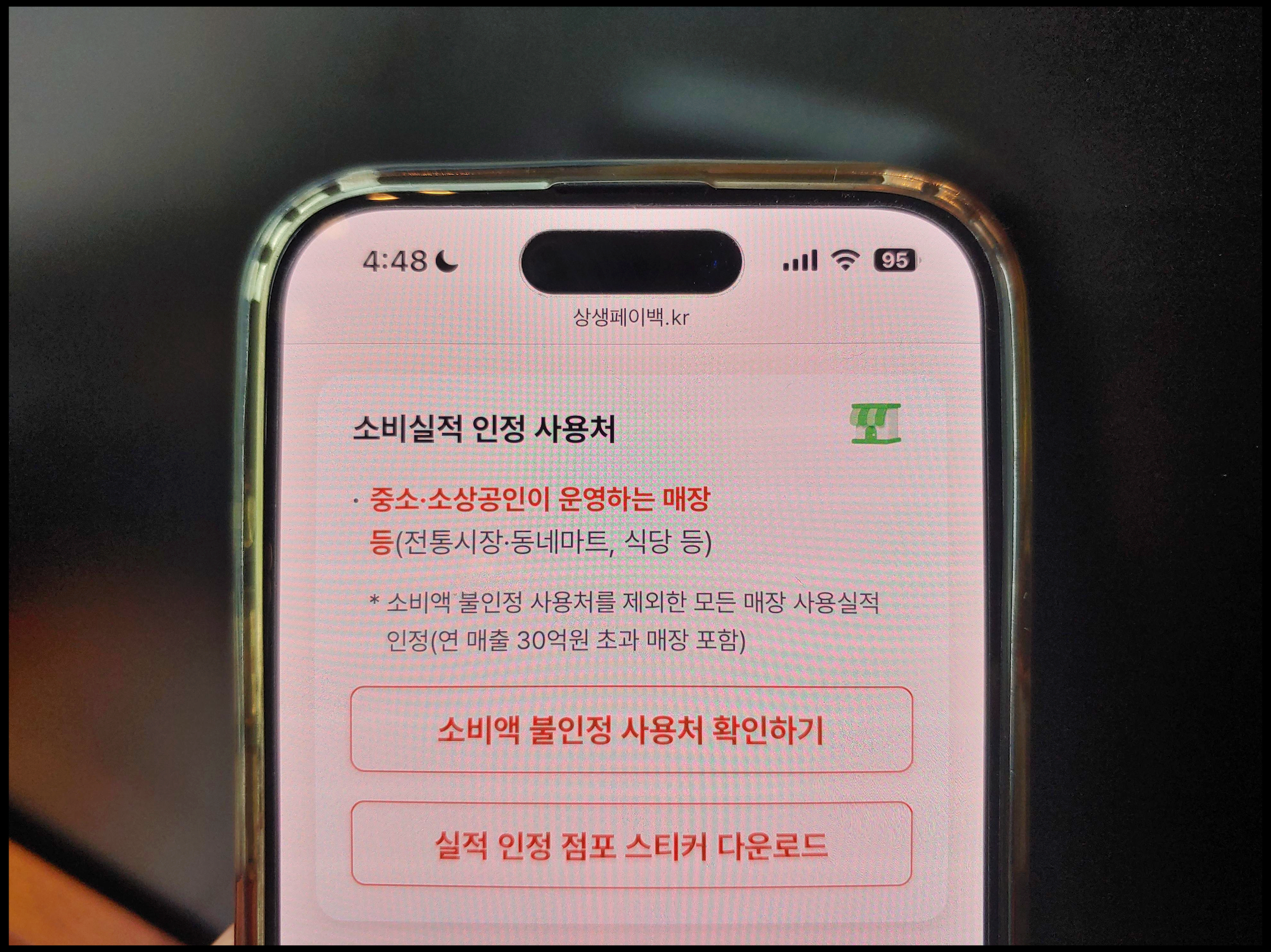 -신청 가능한 곳 : 상생페이백 홈페이지