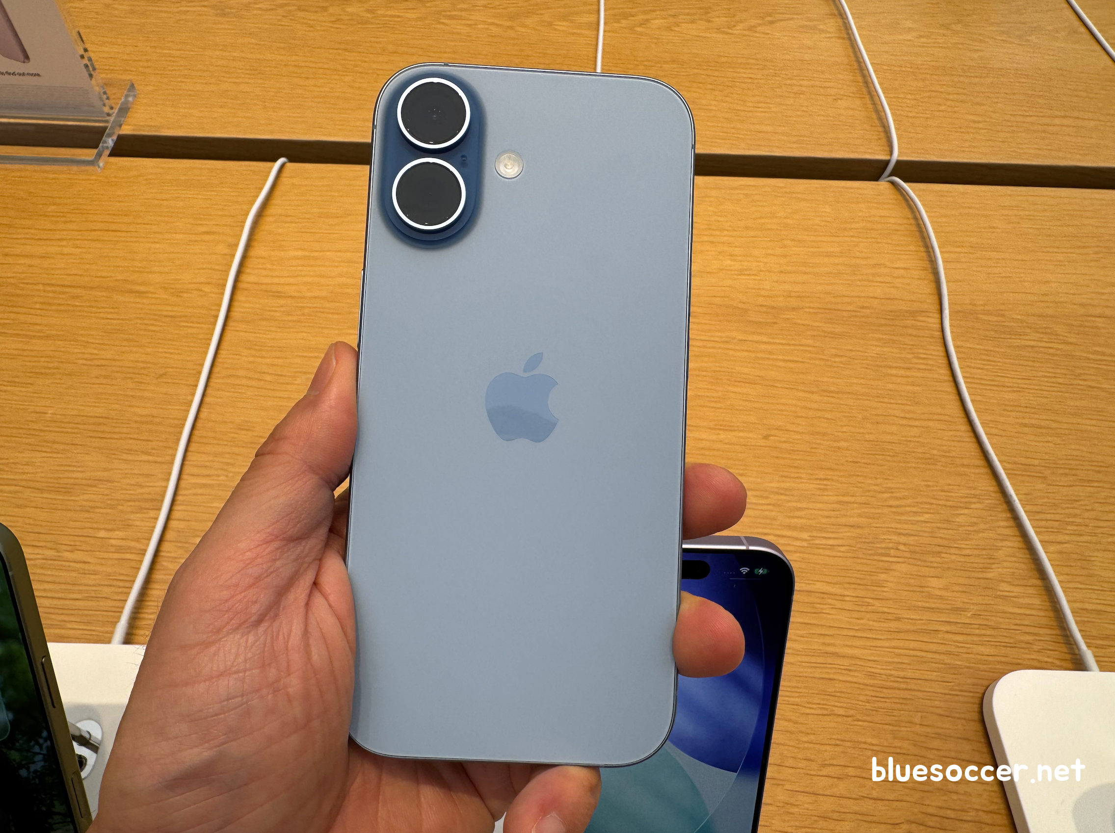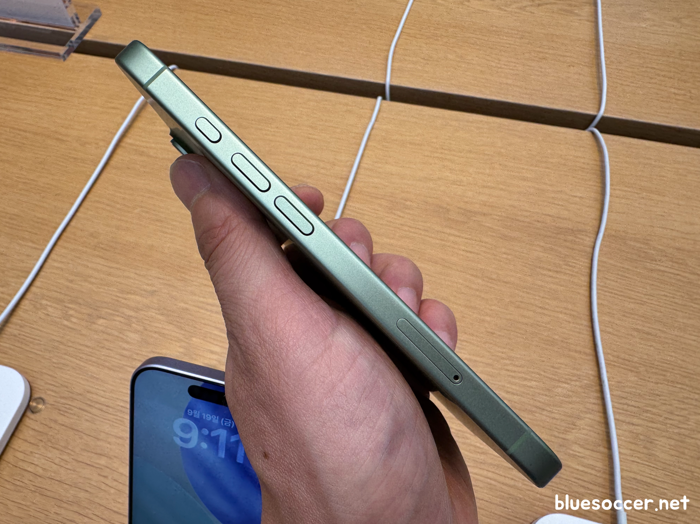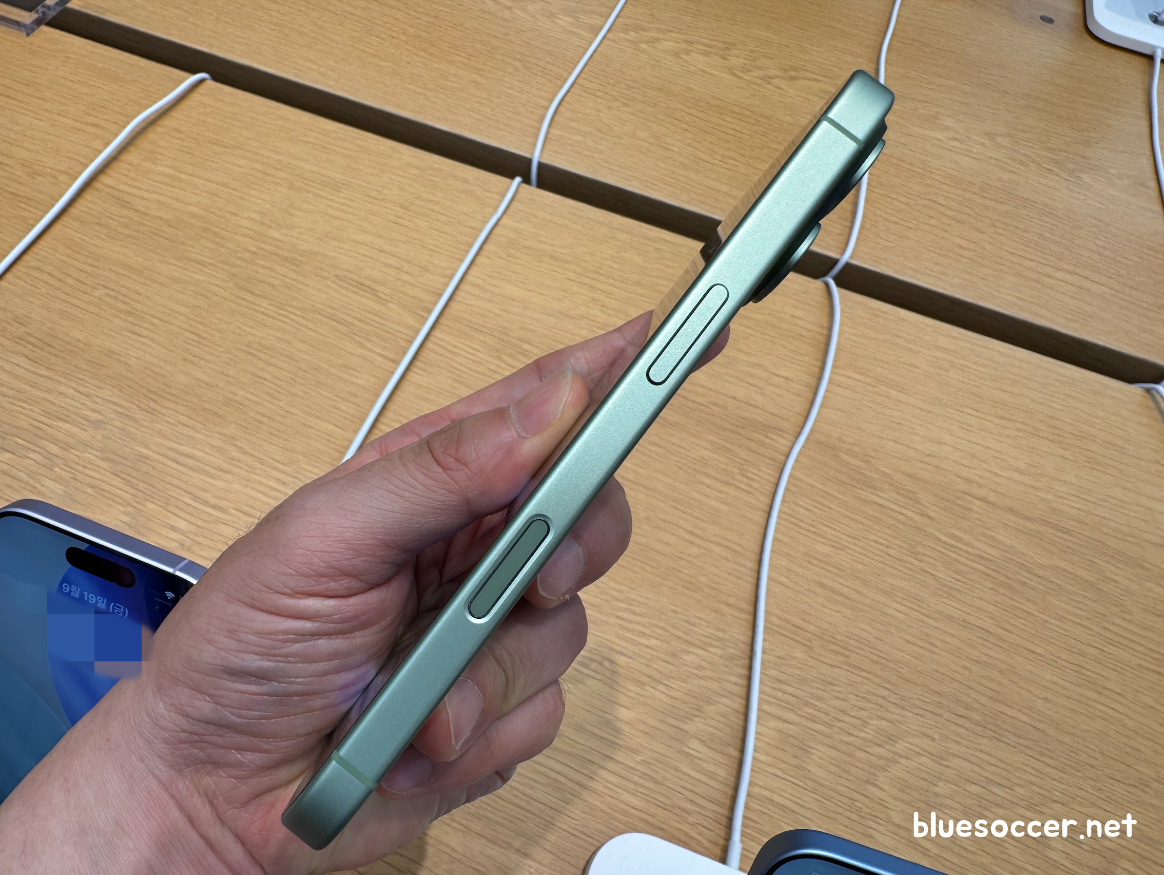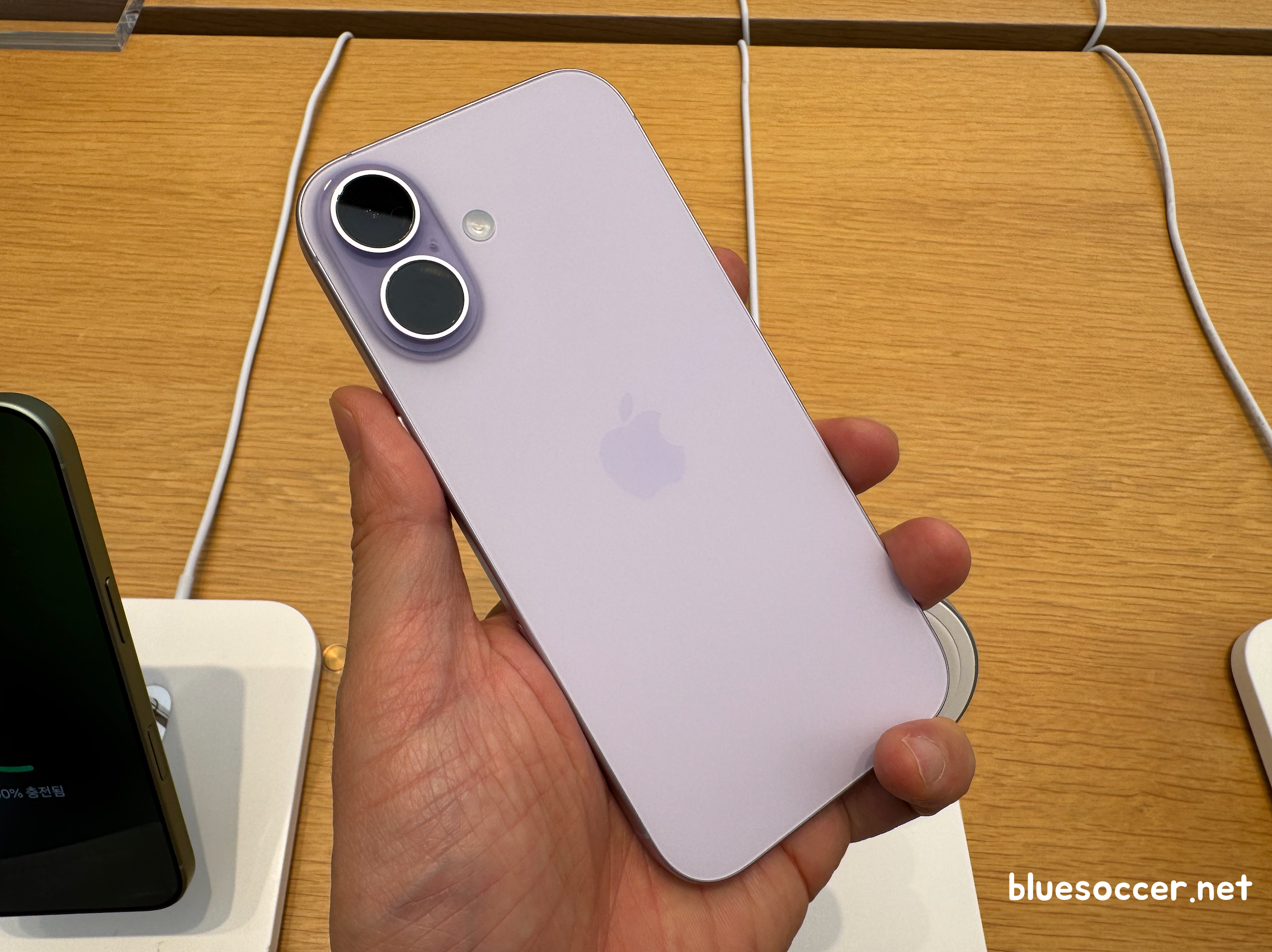 아이폰17 미스트 블루 색상 모습입니다. 전작이었던 아이폰16 울트라 마린과 느낌이 다릅니다. 두 모델 모두 블루 계열이라는 공통점이 있으나 각각 '옅은 톤 vs 진한 톤'이었던 차이점이 있습니다. 최근 국내 트렌드를 보면 옅은 톤을 선호하는 경향이 강합니다.(집 인테리어 스타일에서 그런 경향이 보임)