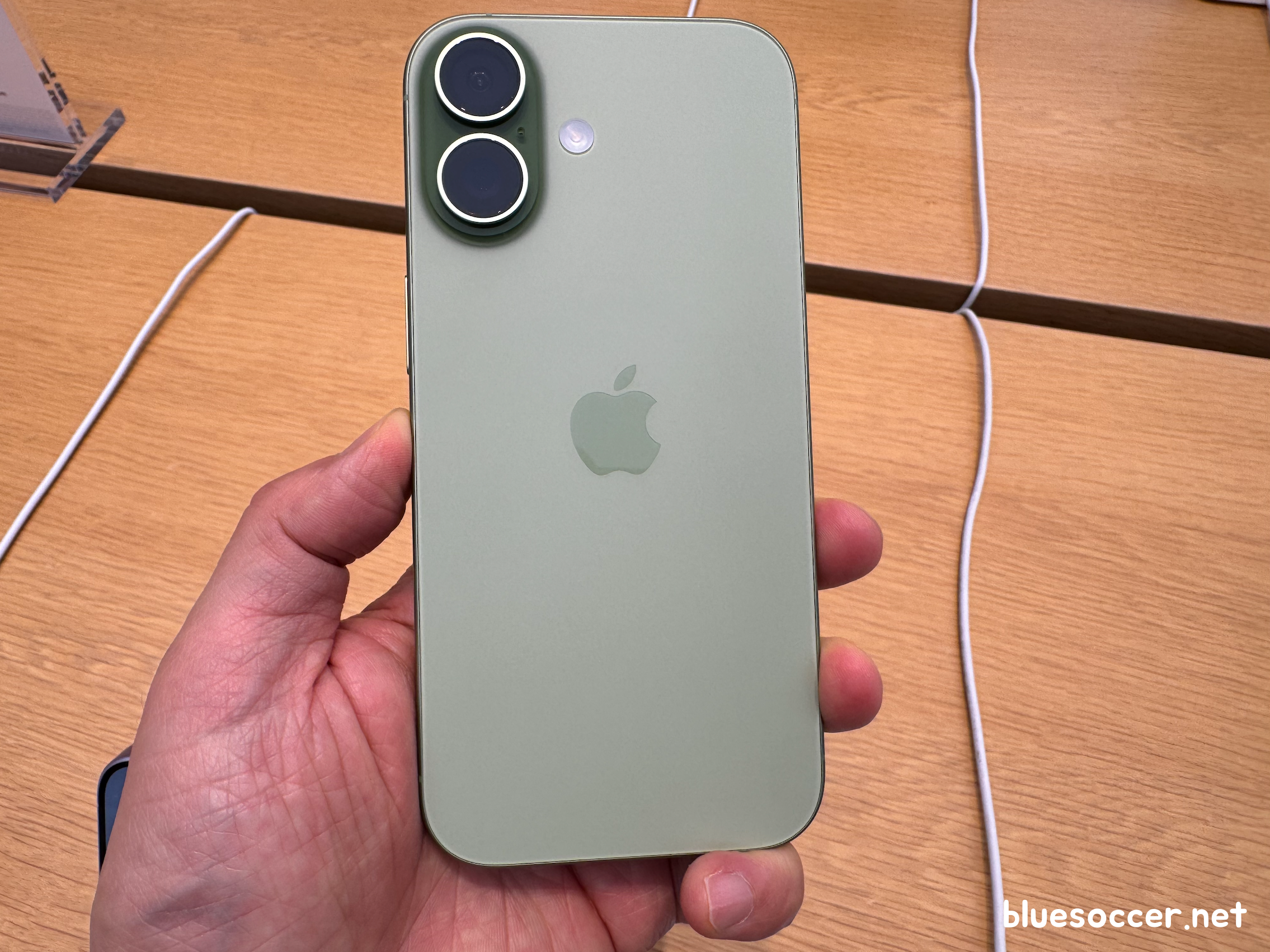 아이폰17 세이지 색상 실물 모습입니다. 그린 계열인데 말차 느낌에 더 가깝습니다. 그래서인지 차분하게 보입니다. 옅은 톤이라 그런지 파스텔 감성을 자아냅니다. 이러한 모습을 선호하는 분들에게는 잘 어울릴 수도 있는 색상 같습니다. 최근에는 한국에서 말차 인기가 높아지기 시작했습니다. 말차와 비슷한 모습에 친숙함 느끼는 분도 있지 않을까 싶습니다.