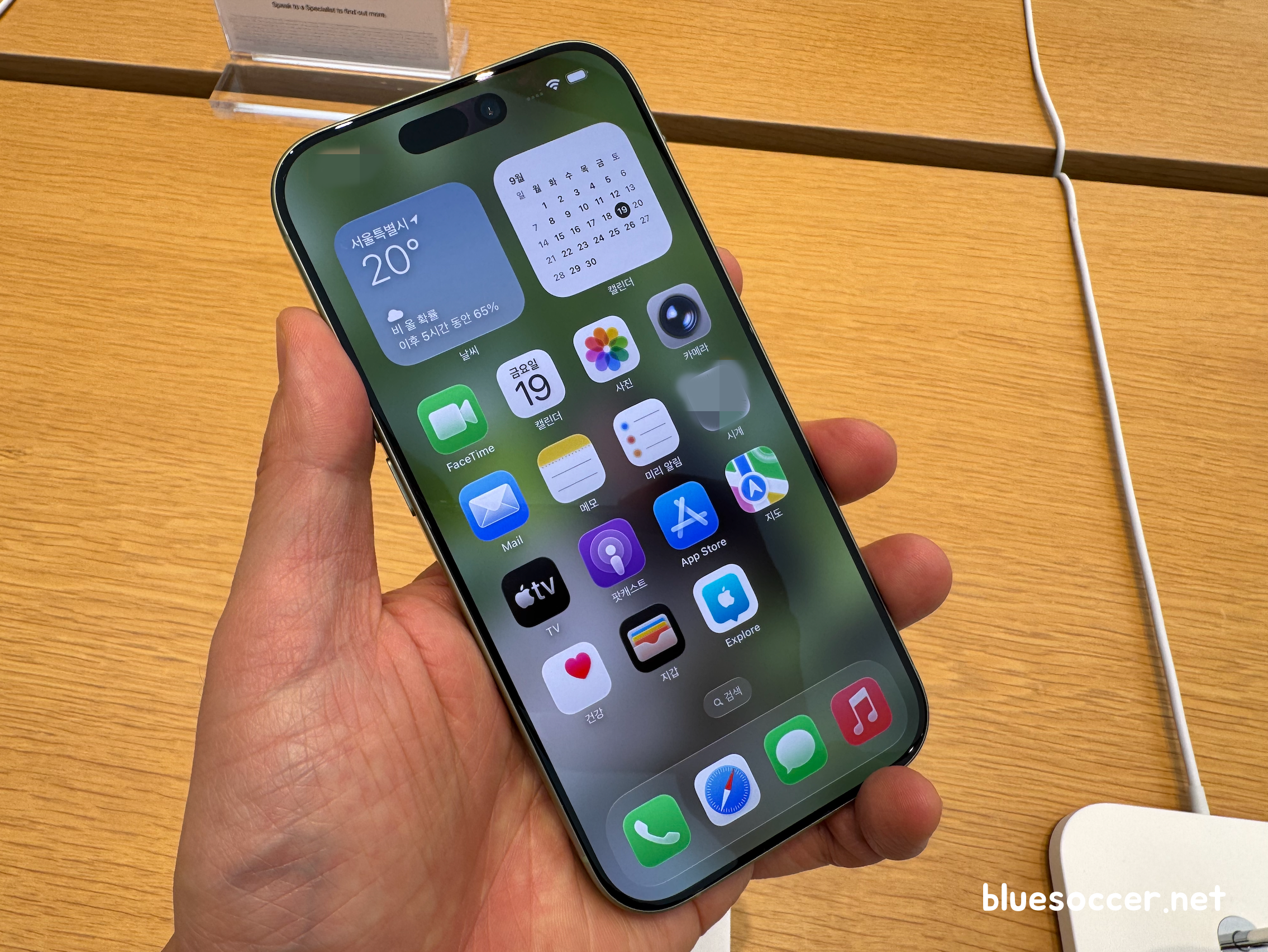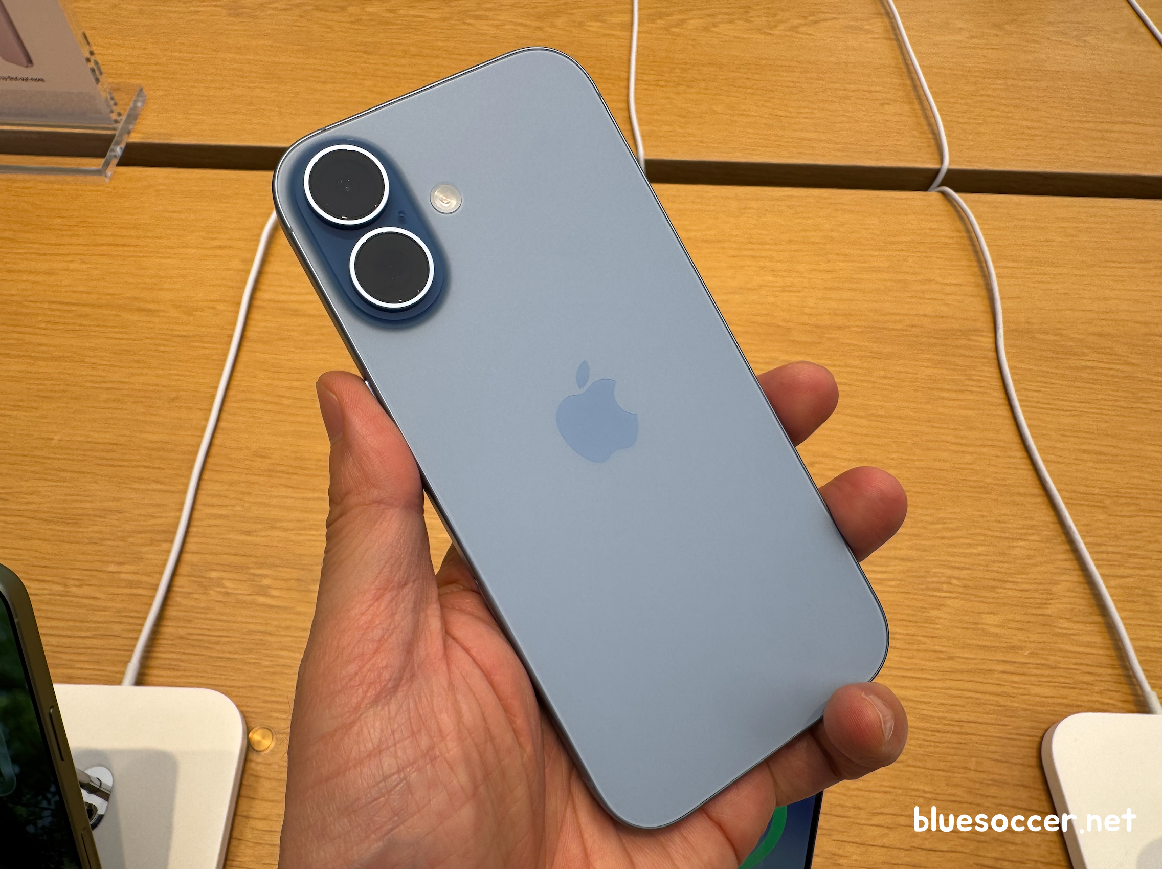 아이폰17 미스트 블루 색상 모습입니다. 전작이었던 아이폰16 울트라 마린과 느낌이 다릅니다. 두 모델 모두 블루 계열이라는 공통점이 있으나 각각 '옅은 톤 vs 진한 톤'이었던 차이점이 있습니다. 최근 국내 트렌드를 보면 옅은 톤을 선호하는 경향이 강합니다.(집 인테리어 스타일에서 그런 경향이 보임)