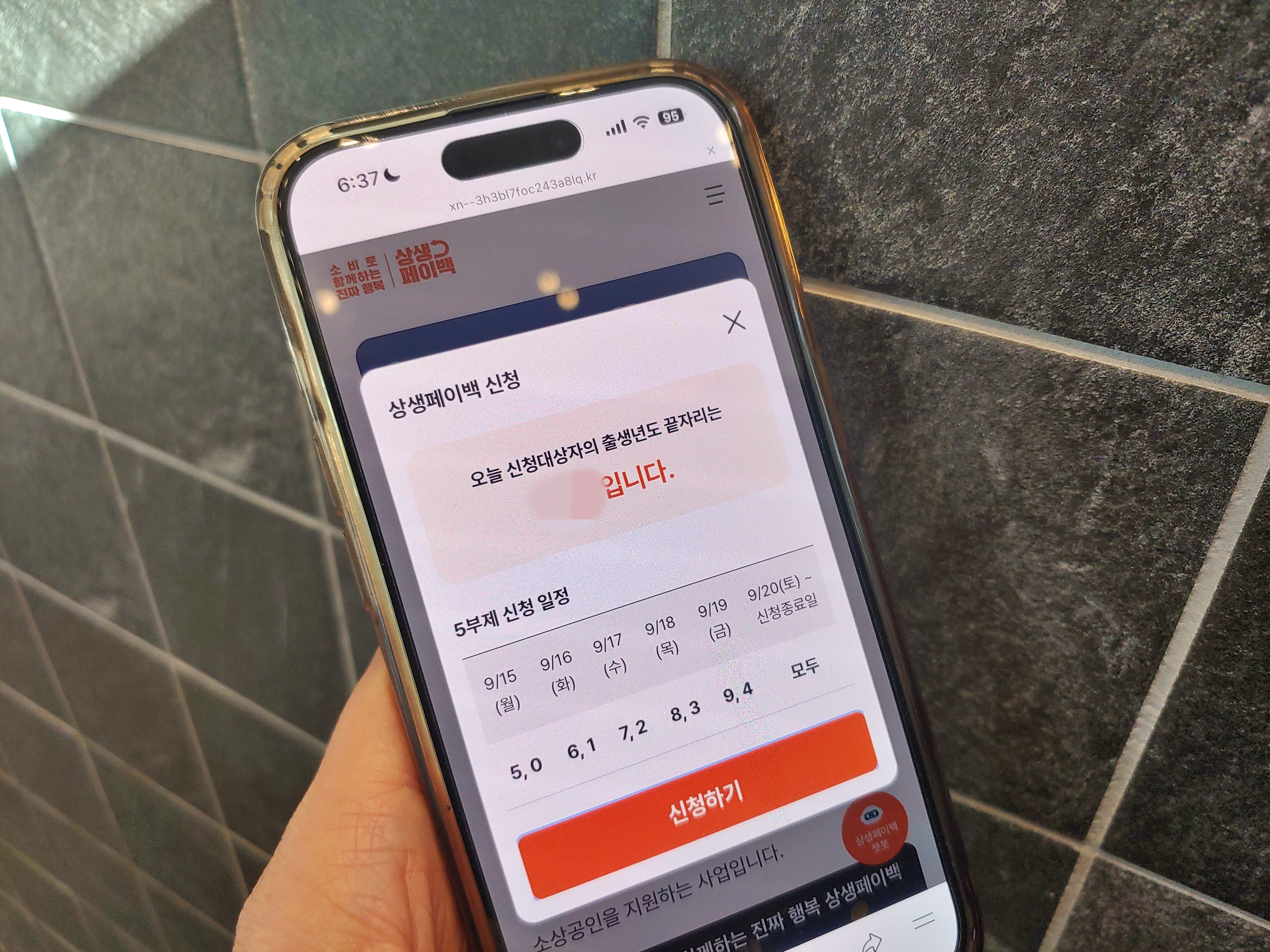 상생페이백 신청 하려면 해당 정책의 홈페이지인 상생페이백.kr 접속하시면 됩니다. 제가 신청했던 때에는 5부제 적용되었던 시점인데, 지금은 5부제 적용되지 않습니다.