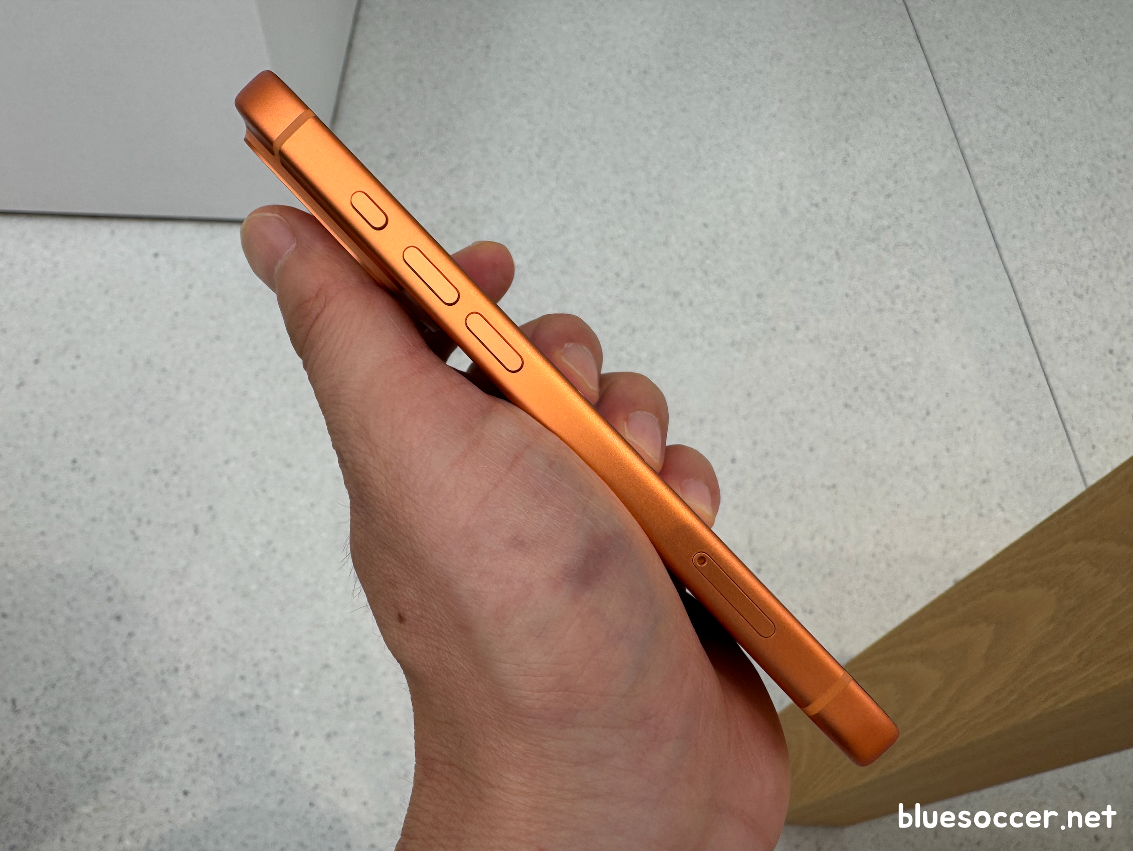 테두리도 오렌지와 동일한 색상입니다. 같은 날 함께 공개 및 발표된 아이폰 에어는 후면 및 테두리가 서로 다른 색상인 것에 비해서, 아이폰17 일반형 및 프로 라인업 2종은 다릅니다.
