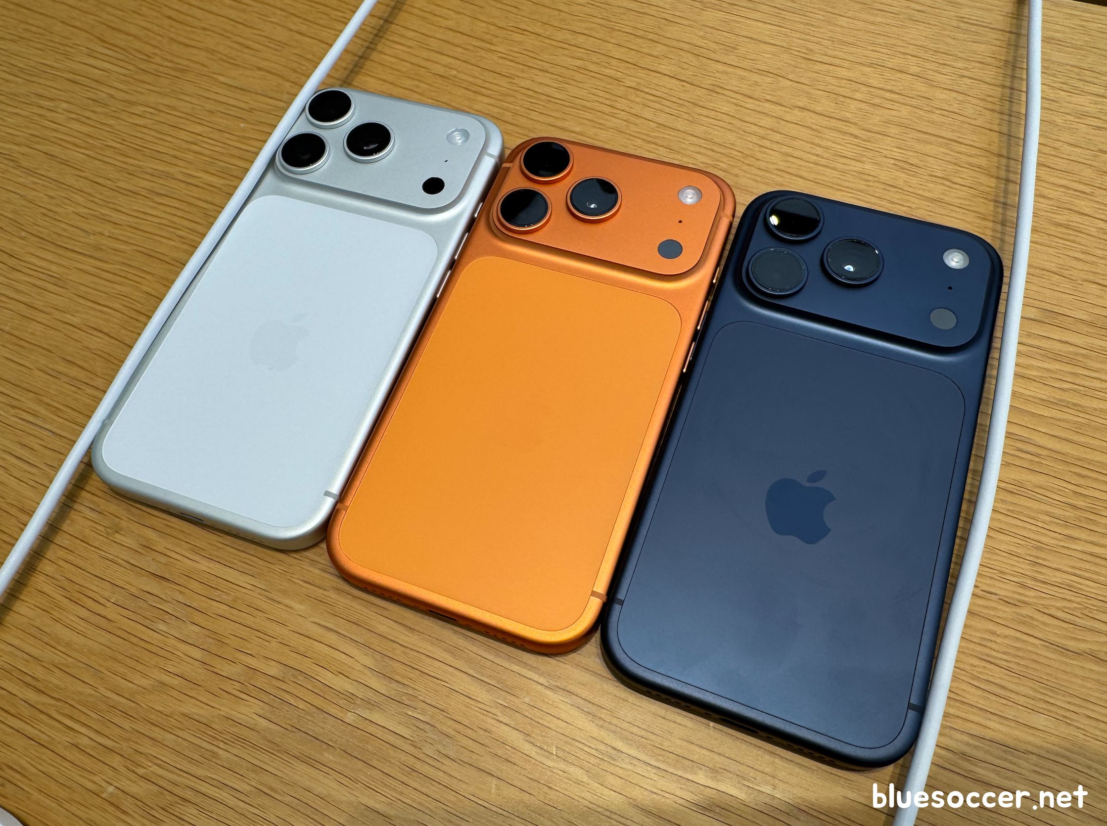 아이폰17 프로 색상 실버 오렌지 블루 모습입니다. 처음에 실물 접했을 때의 느낌은 제품 공개 당시 인터넷 사진으로 봤을 때와 조금 달랐습니다. 실버는 생각보다 깔끔했고, 오렌지는 실물이 진하게 나온 것 같았으며, 블루는 어두운 톤이었습니다. 현재 이 제품 장만 여부에 대하여 고민하시는 분이라면 실물이 어떤지 살펴보는 것이 좋을 듯합니다. 인터넷 사진으로 보는 것과는 느낌이 살짝 다릅니다. 저는 아이폰15 프로 사용자라서 기존에 사용하는 제품을 그대로 쓰겠지만, 혹시나 이번 시리즈 색상 고른다고 가정하면 실버가 되지 않을까 싶습니다.