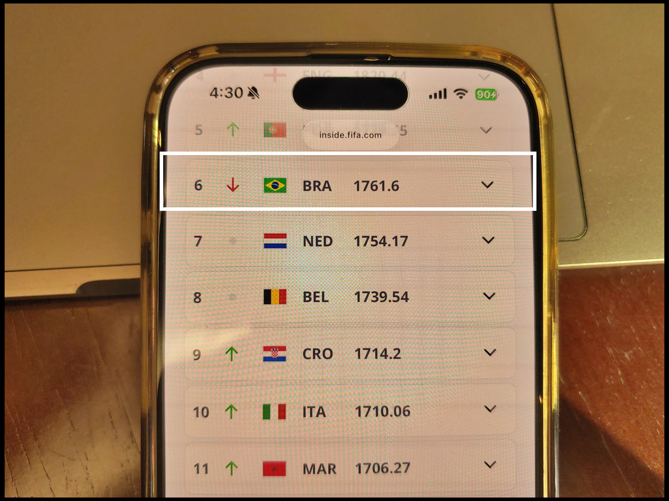 [사진 = 한국 브라질 피파랭킹 순위 각각 23위, 6위다. 현재 시점에서는 북중미 월드컵 포트2, 포트1 배정 가능성이 있다. 하지만 한국은 포트2 마지막 순서나 다름없다. 26위 캐나다가 공동 개최국이기 때문. 만약 홍명보호가 10월 A매치 2경기 이후로 24위로 밀리면 포트3으로 내려갈 가능성 있다. 이렇게 된다면 오는 11월 A매치 2경기 부담이 커진다. 오는 10월 14일 파라과이전을 이기는 것이 중요하며, 브라질전은 현실적으로 전력 열세를 극복하기 어려우나 혹시나 뜻밖의 좋은 결과를 거두면 포트2 확정에 대한 기대감을 높일 수 있다. (C) 국제축구연맹(FIFA) 공식 홈페이지(fifa.com)]