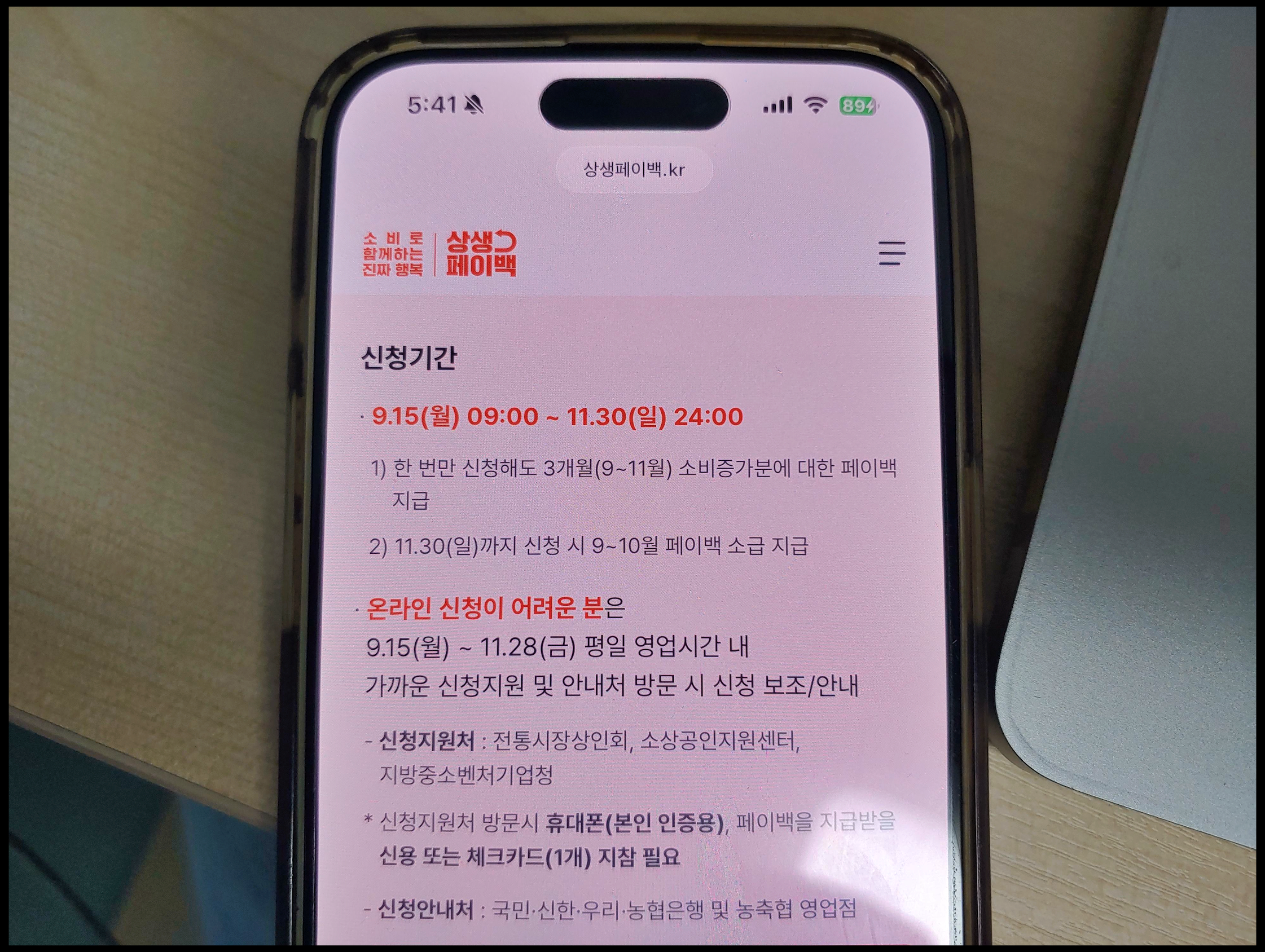 상생페이백 신청기간 오는 11월 30일 일요일 24시(자정)까지입니다. 9월, 10월, 11월 총 3개월 진행되는 정책입니다. 오는 12월 15일에 11월 실적분 지급 받으면 해당 정책 일정 끝난다고 보시면 됩니다.