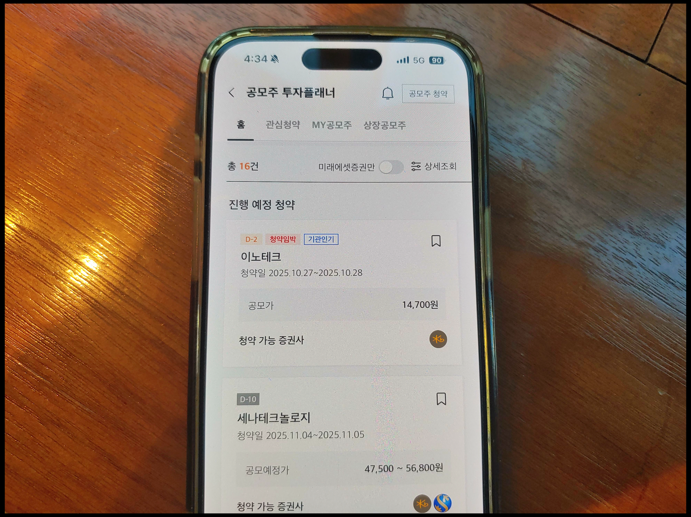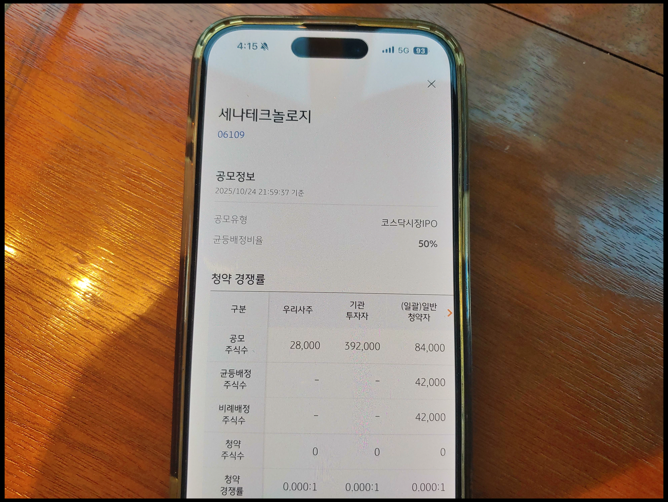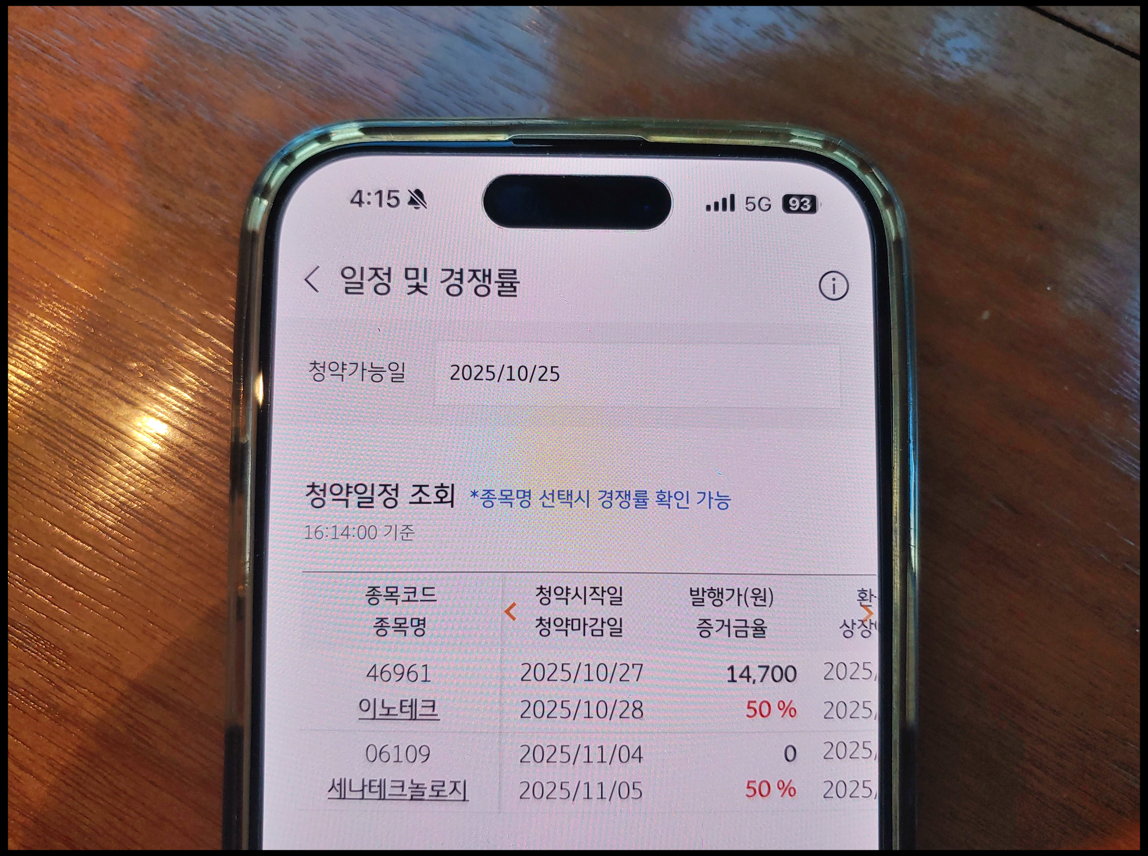 [사진 = 2025년 11월 공모주 일정 첫 번째 종목은 2개 입니다. 그중에 하나인 세나테크놀로지는 흑자 기업이라 일반 청약자 분들의 관심이 클 것으로 보입니다. 공동 주관사는 두 곳입니다.(KB, 신한) KB증권 일반 청약자 수량 최소 84,000주, 신한투자증권 최소 56,000주입니다. 일반 청약자 배정 수량 최소 14만 주인데, 균등 배정 최소 7만 주입니다. 균등 1주 배정 경쟁이 치열할 것으로 예상됩니다. KB증권의 경우 오는 10월 27일~28일 이노테크 공모주 주관사입니다. 이 종목 수요예측 결과가 좋게 나왔는데, 환불을 하지 않고 세나테크놀로지 기다리는 분이 꽤 있을 것으로 예상됩니다. (C) KB증권 앱]