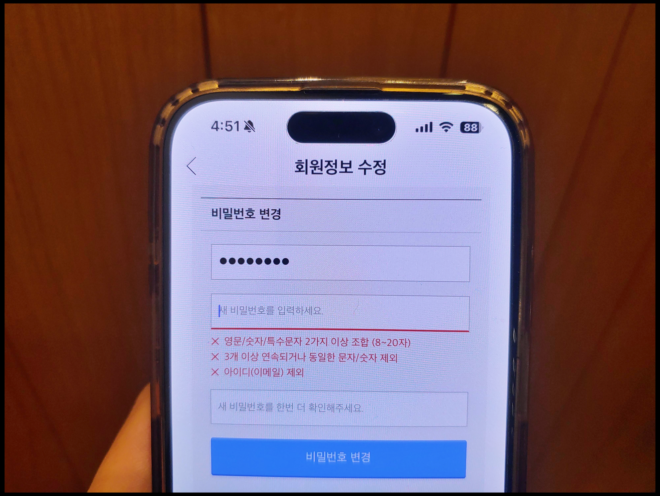 해당 플랫폼 이슈로 불안함 느끼는 분이 많을 겁니다. 패스워드 및 결제정보가 외부로 퍼지지 않았다는 것이 쿠팡의 주장이지만, 혹시나 싶은 마음에 바꾸고 싶어하는 분들도 있을 겁니다. 개인적으로도 유명 플랫폼 개인정보 털렸던 적이 이전에 있었습니다. 누군가 저의 계정으로 어딘가에 부적절한 게시물을 올리며 피해를 줬던 순간이 지금도 떠오릅니다. 자칫 잘못하면 제가 가해자가 되는 상황이 벌어질 수 있습니다.(다행히도 그 플랫폼은 제가 털린 것을 인지했습니다.) 만약 고객의 개인정보가 털린다면 비밀번호라도 꼭 바꾸는 것이 좋다고 봅니다. 그 플랫폼을 안전하게 이용할 수 있는 방안이기 때문입니다. 개인적인 생각이지만, 쿠팡 비밀번호 변경 꼭 하는 것이 좋다는 생각입니다.