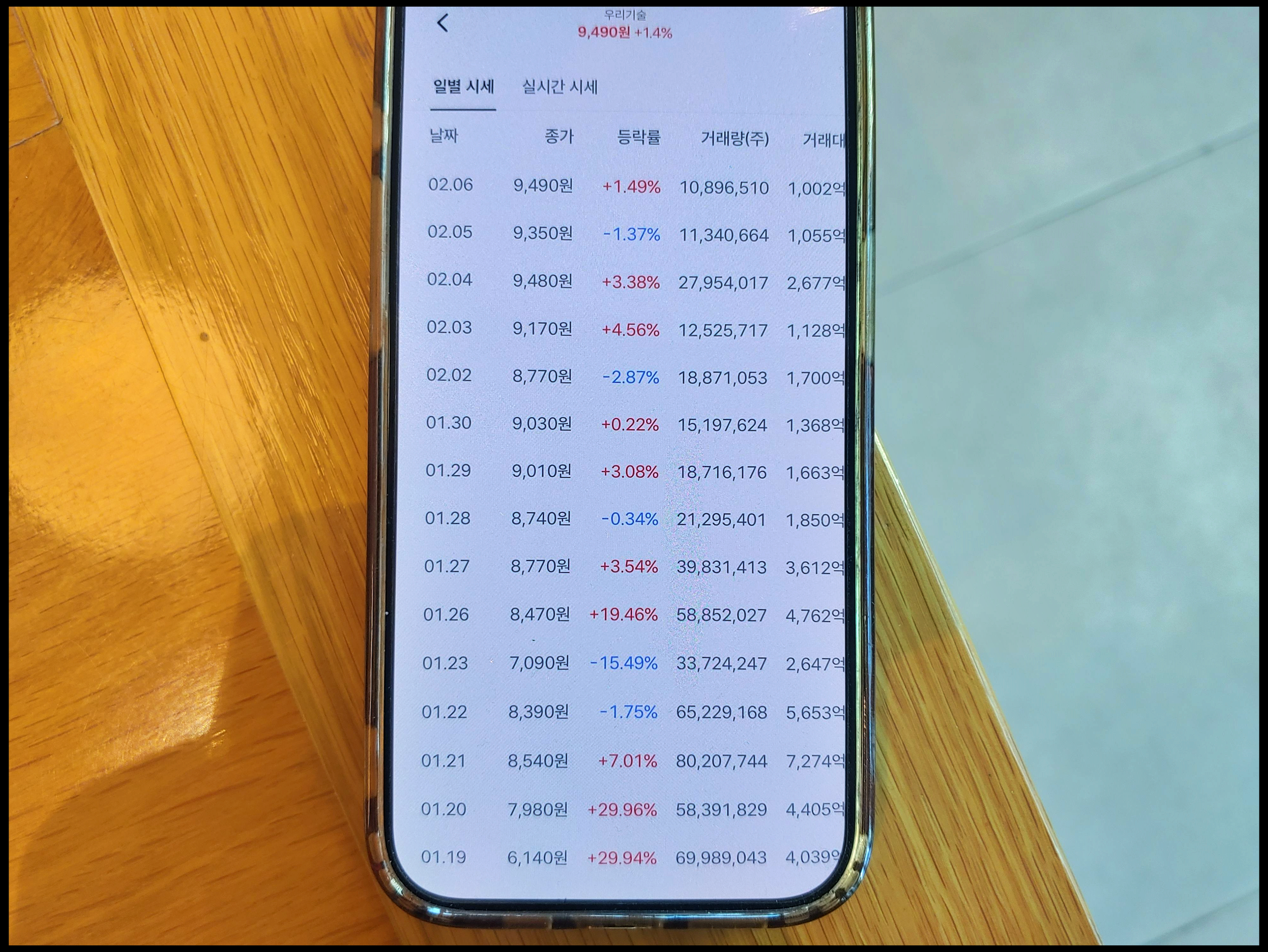 원전 관련주 두산에너빌리티 이외에 주목할 종목들이 더 있습니다. 올해 초 코스닥에서 핫한 종목이 있다면 우리기술입니다. 1월 19일과 20일 이틀 연속 30% 상한가 달성했습니다. 그 이후에는 8천 원대를 넘어 9천 원대 진입했습니다. 1월 2일 3,735원에서 시작했는데 불과 한 달 만에 3배 올랐습니다.