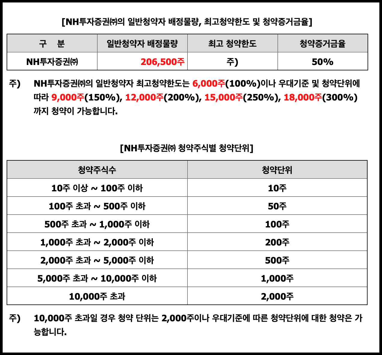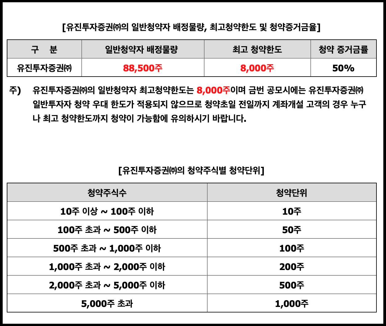 균등 및 비례 수량 : 103,250주(NH) 44,250주(유진)